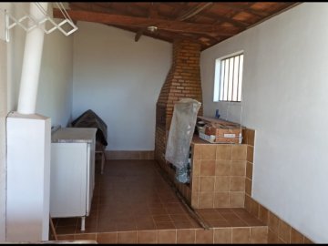 BENFEITORIAS: SEDE BOA de sólida construção, com 2 dormitórios, sala ampla, banheiro social, cozinha com fogão a lenha, área de serviço, área gourmet com churrasqueira, garage coberta para 3 veículos. Acabamento: piso frio, laje, azulejos 2m, pia e cuba inox, peças sanitárias coloridas, portas e vitrôs de ferro e vidro. CASA PARA CASEIRO, 2 dormitórios, sala, cozinha com fogão a lenha e banheiro.