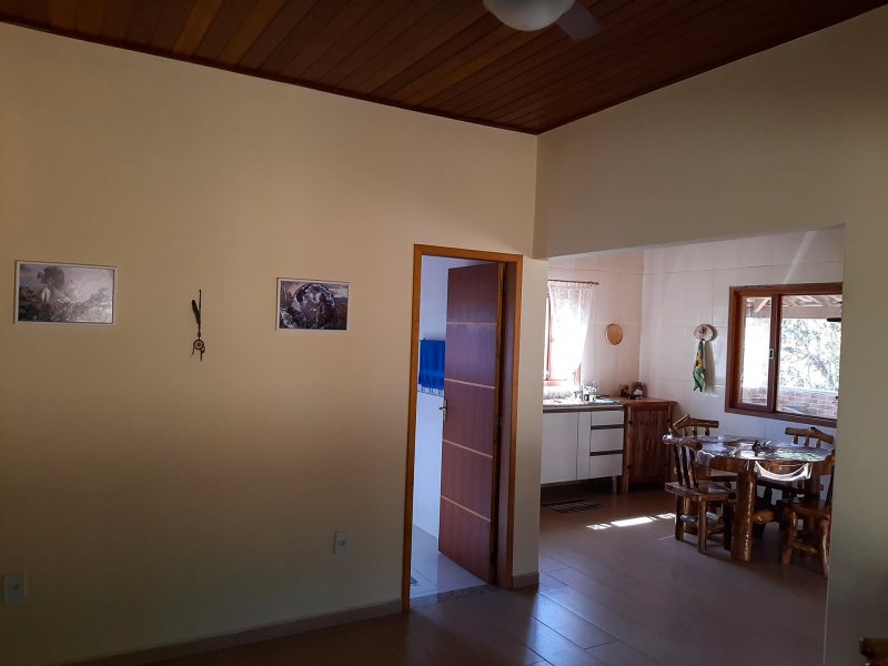 CASA: NOVA contendo 2 dormitórios (1 suíte), banheiro social, sala e cozinha conjugadas, área de lazer com fogão à lenha e bela varanda em "U".