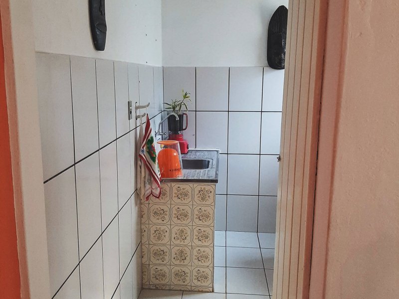 10 KITNETs: 439,00m2 de área construída total, sendo todas geminadas e de igual dimensão, com acesso privativo a cada 2 unidades, estando 3 delas bem conservadas e as demais necessitando reparos. Cada uma das Kitnets composta de: dormitório, sala, copa e cozinha, banheiro, área de serviço. Todas com piso frio.