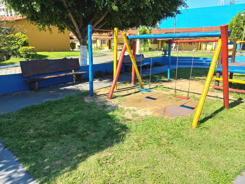 Condomínio com playground, quadra de esporte e portão eletrônico.