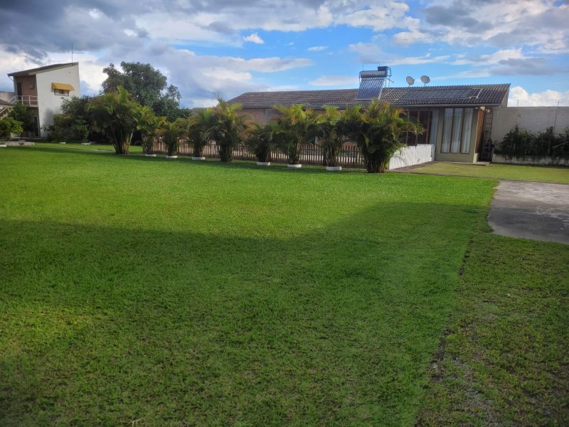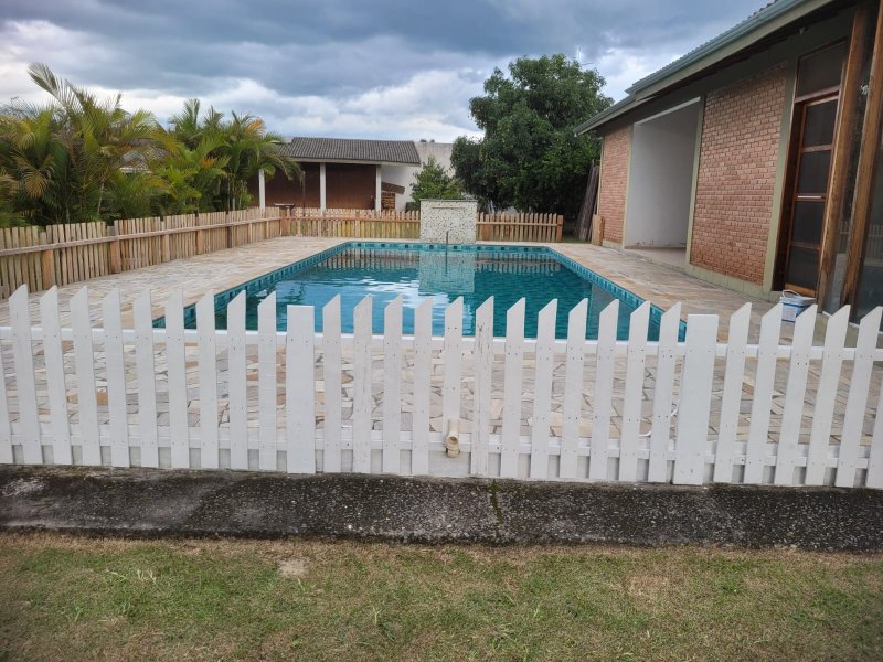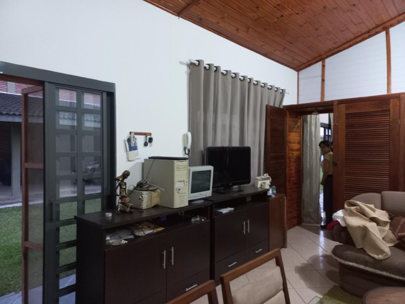 Casa sede: Em 2 andares com área construída total de 400m². Parte térrea com parte térrea com 2 suítes, sendo uma com closet, sala de estar, sala de jantar, lavabo, escritório, cozinha com churrasqueira e dispensa, teto em laje. Andar superior: com 2 suítes, sendo uma com closet, sala grande, escritório, salão de cinema e sótão, forro em madeira.