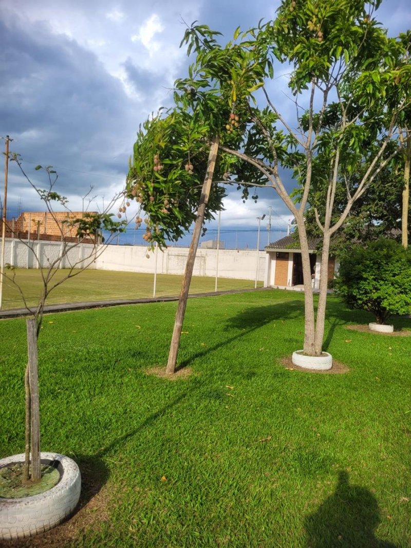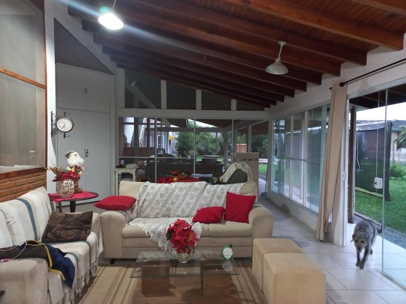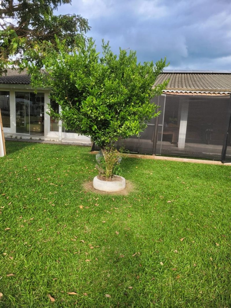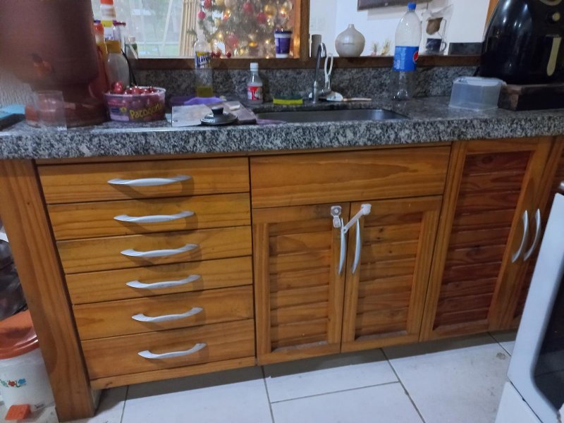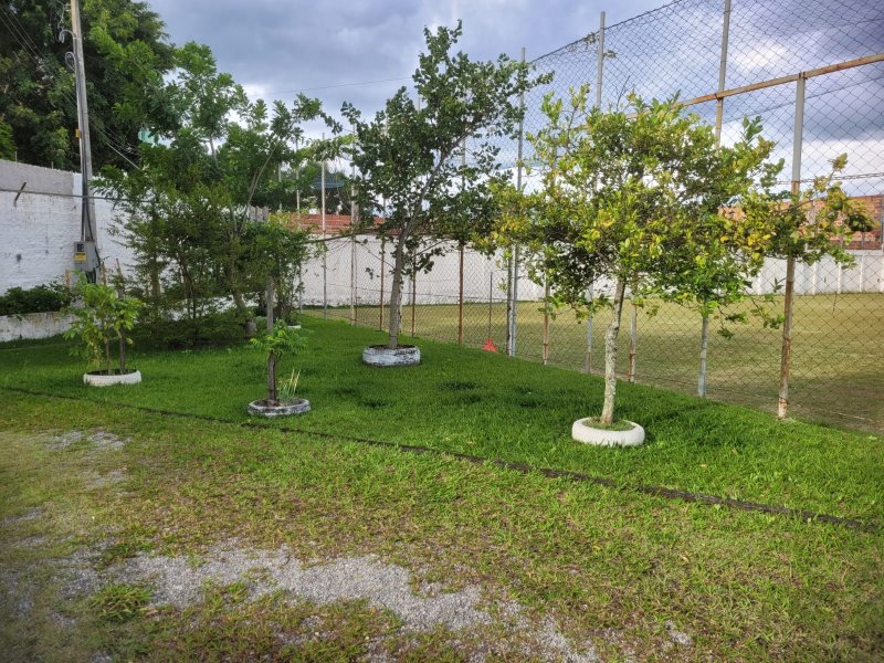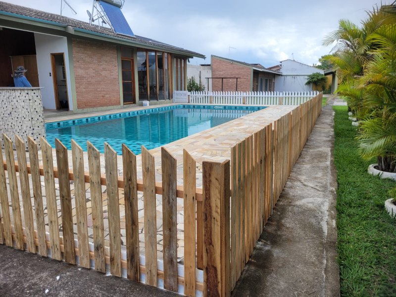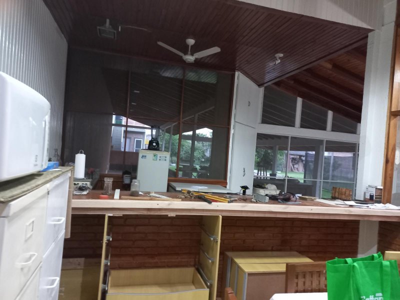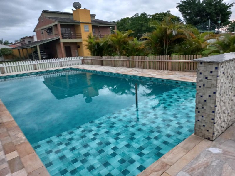 3 aparelhos de ar condicionado, 11 ventiladores, forros das construções todos em madeira, todos banheiros são azulejados até o teto com gabinetes e box blindex, garagem coberta para 3 carros.