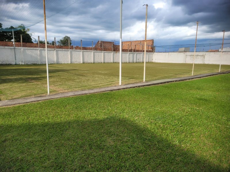 Campo de futebol society medindo 40x22 metros.