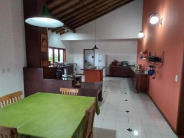 CHARMOSA INTEGRAÇÃO ENTRE SALA DE JANTAR, COZINHA COM AMPLO FOGÃO À LENHA E COPA. Cozinha