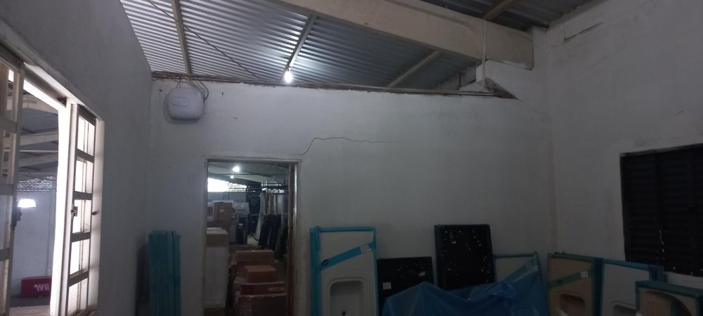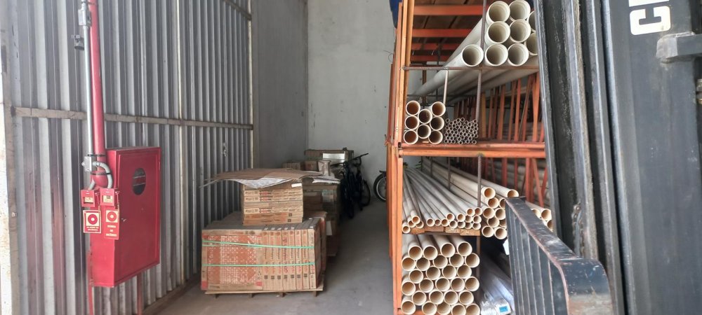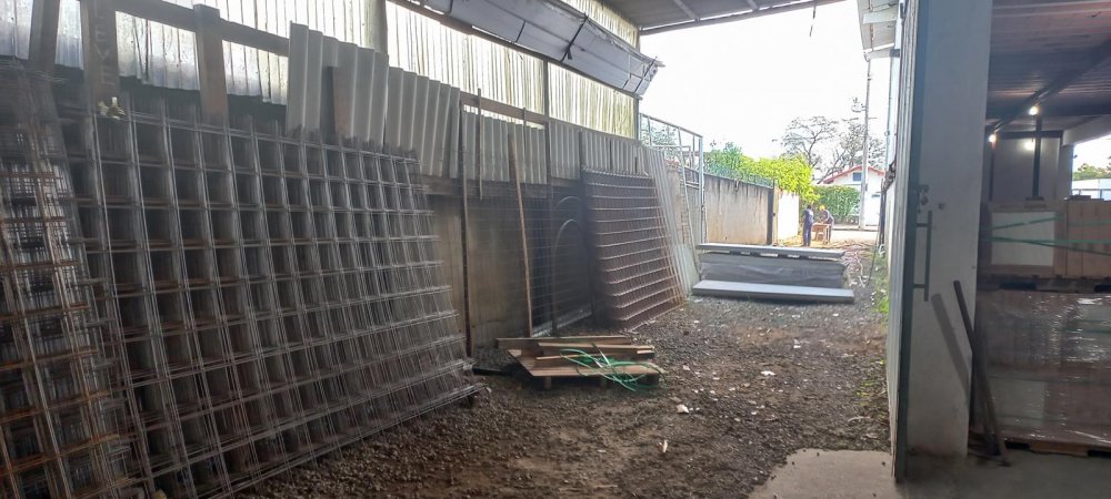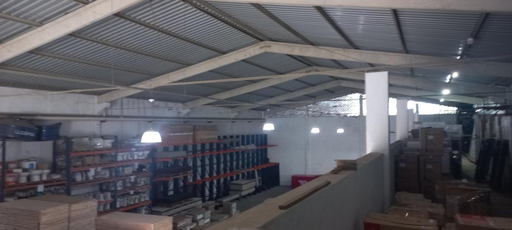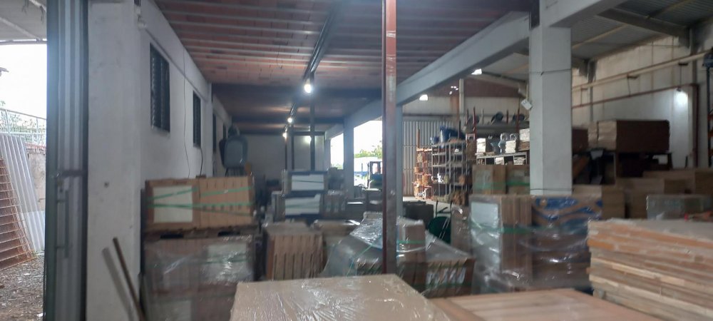 800m2 de área construída contendo: Galpão de alvenaria com colunas de concreto, amplo mezanino, sala de reunião, 2 banheiros e cozinha. Pé direito 6,00 metros, piso usinado, malha dupla para carretas, telhas galvanizadas industriais, energia trifásica.