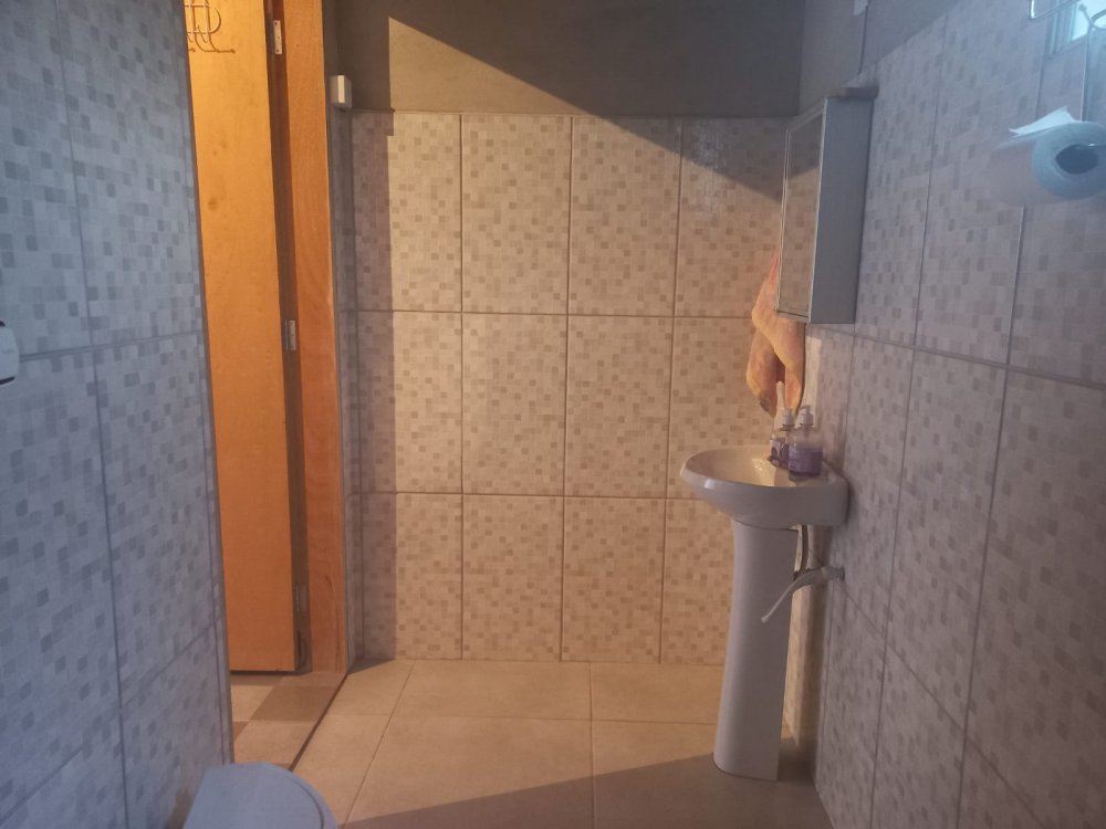 Piso porcelanato, laje, cozinha e banheiro azulejados até o teto, box Blindex.