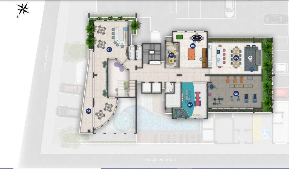 Área de lazer, piscina adulto/infantil, playground, sauna, salão de jogos, espaço gourmet, brinquedoteca, academia.
