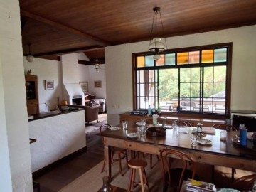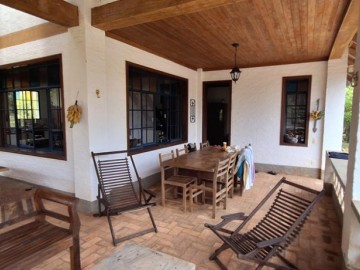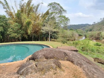 BENFEITORIAS: Sede com 230m2, PROJETO ARQUITETÔNICO ÍMPAR, com 2 pavimentos, mezanino, contendo: 3 dormitórios (1 suíte), 2 banheiros, armários, escritório, sala de estar com lareira, sala de jantar conjugada com a cozinha, despensa. Ampla varanda em "L" com churrasqueira, forno à lenha e forno de Pizza., voltada para o rio Paraitinga e para a piscina, lavanderia e WC de serviço externos. Garagem externa coberta para 2 veículos. Piscina abastecida por nascente, redonda com 50m2, construída junto a grandes pedras naturais, compondo uma integração inédita.