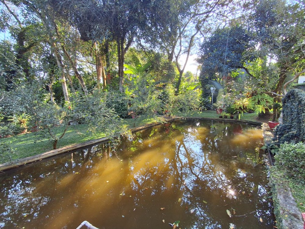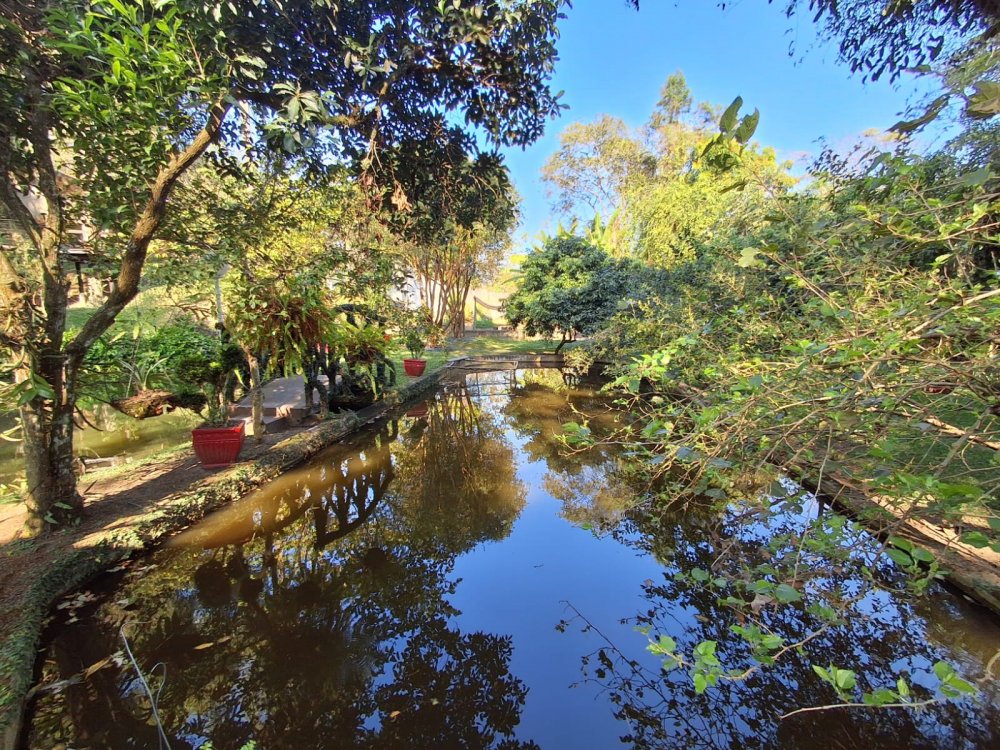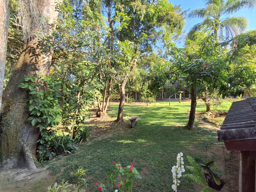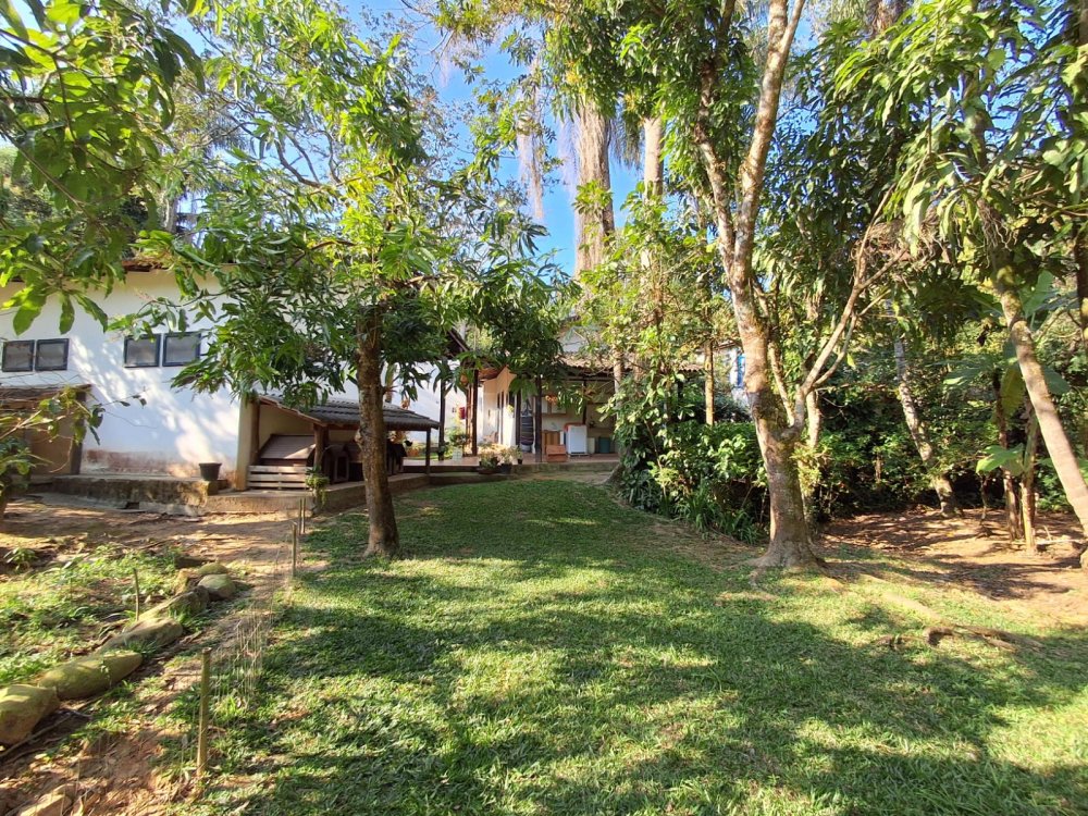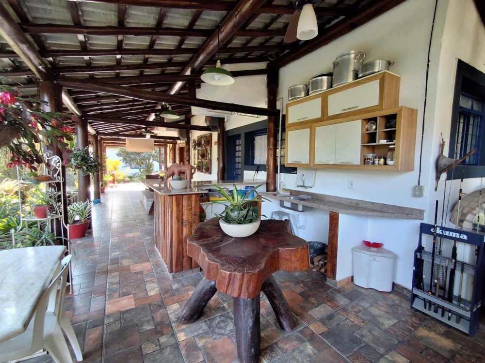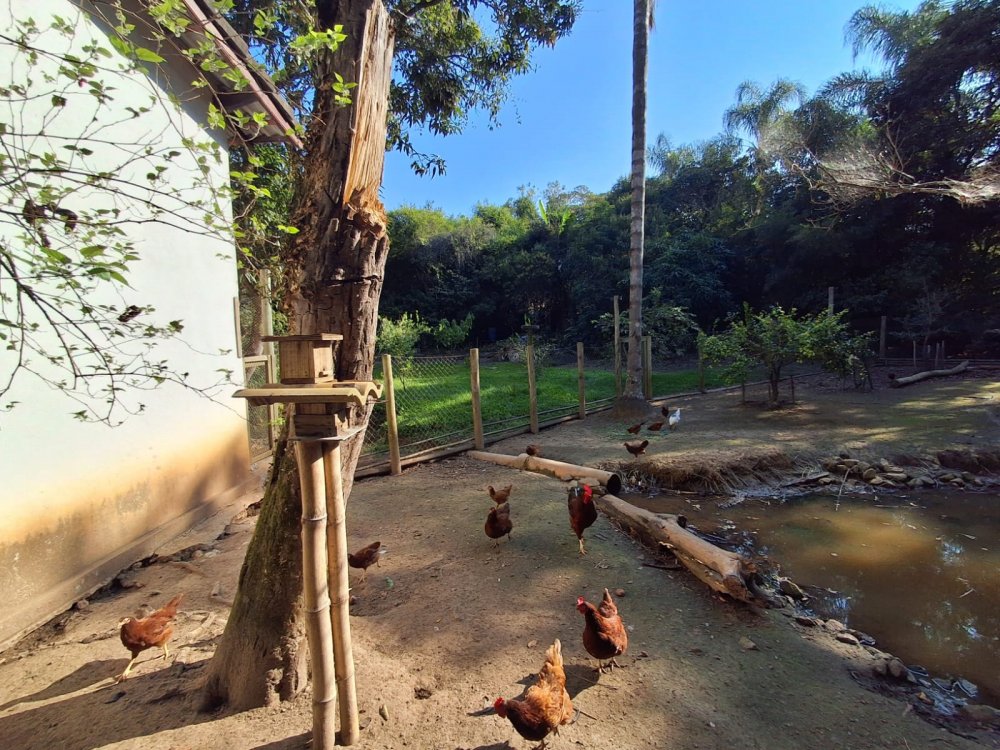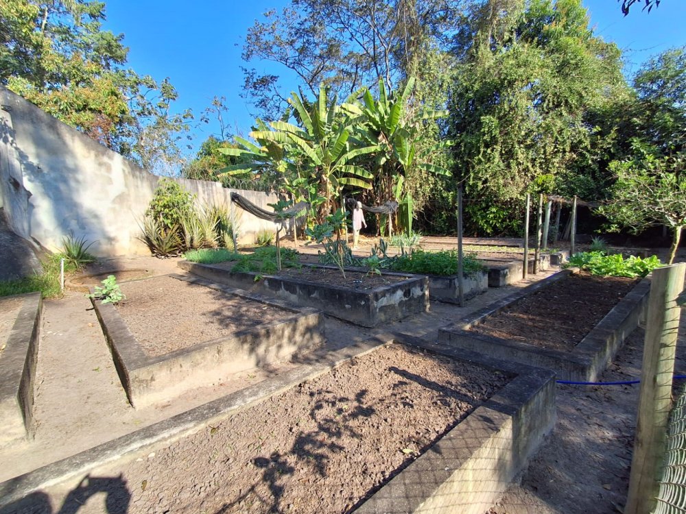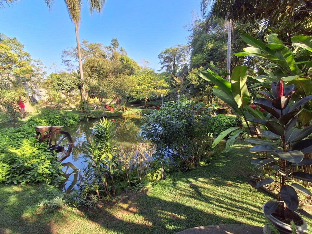 BENFEITORIAS: BELA ACONCHEGANTE E CONFORTÁVEL SEDE, TOTALMENTE MOBILIADA E DECORADA COM FINO GOSTO, contendo: 5 dormitórios (3 suítes), amplas salas de estar e jantar, cozinha completa, despensa, VARANDA FRONTAL VOLTADA PARA OS JARDINS, com grande mesa em MADEIRA MACIÇA compondo a ÁREA GOURMET com churrasqueira, forno e fogão à lenha. BRINQUEDOS INFANTIS: Casa de boneca, escorregador, mirante e outros.
