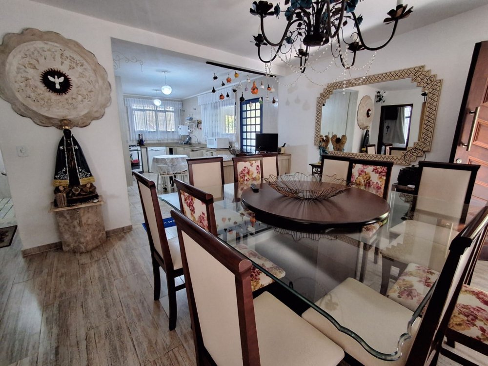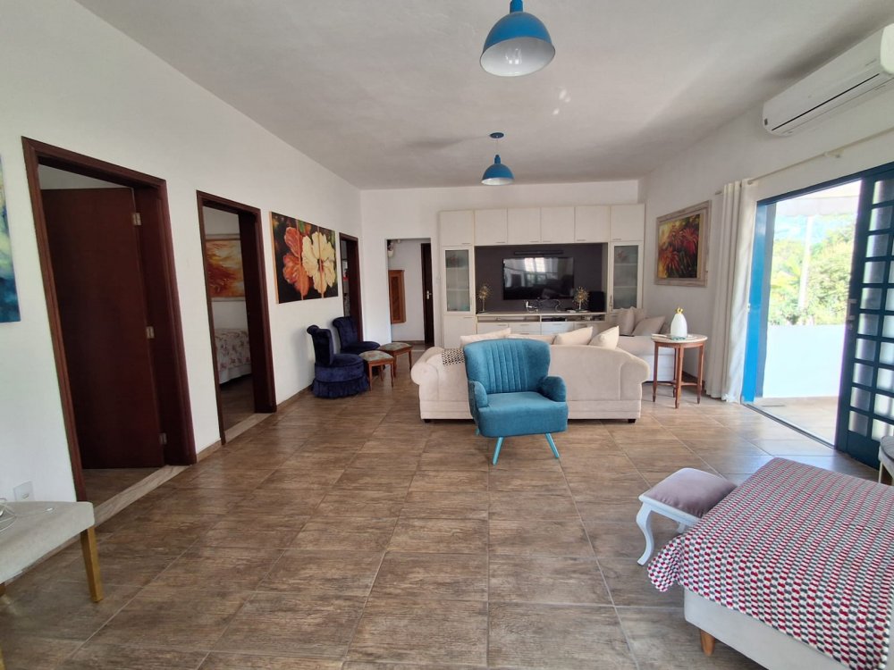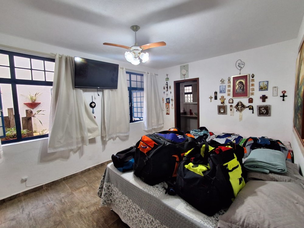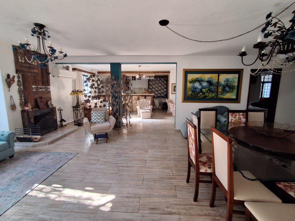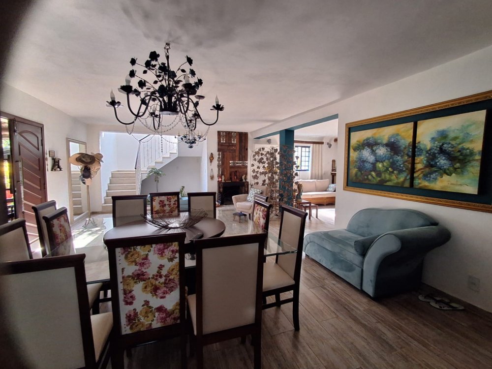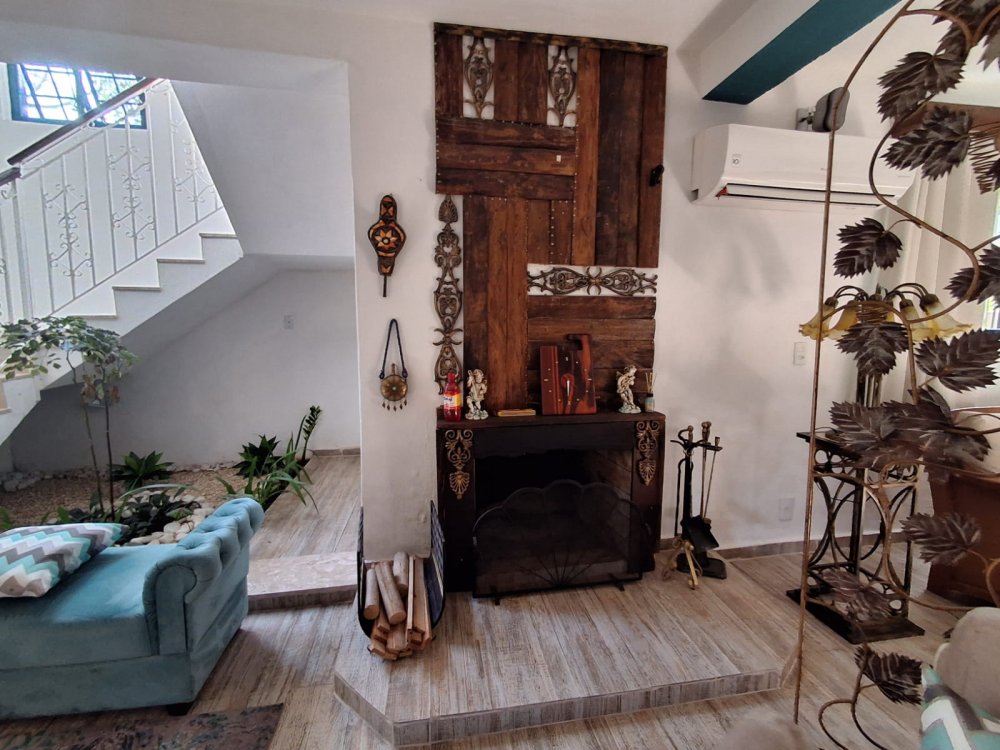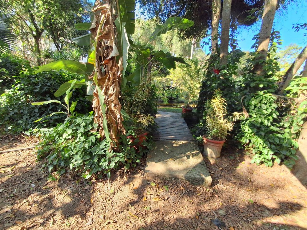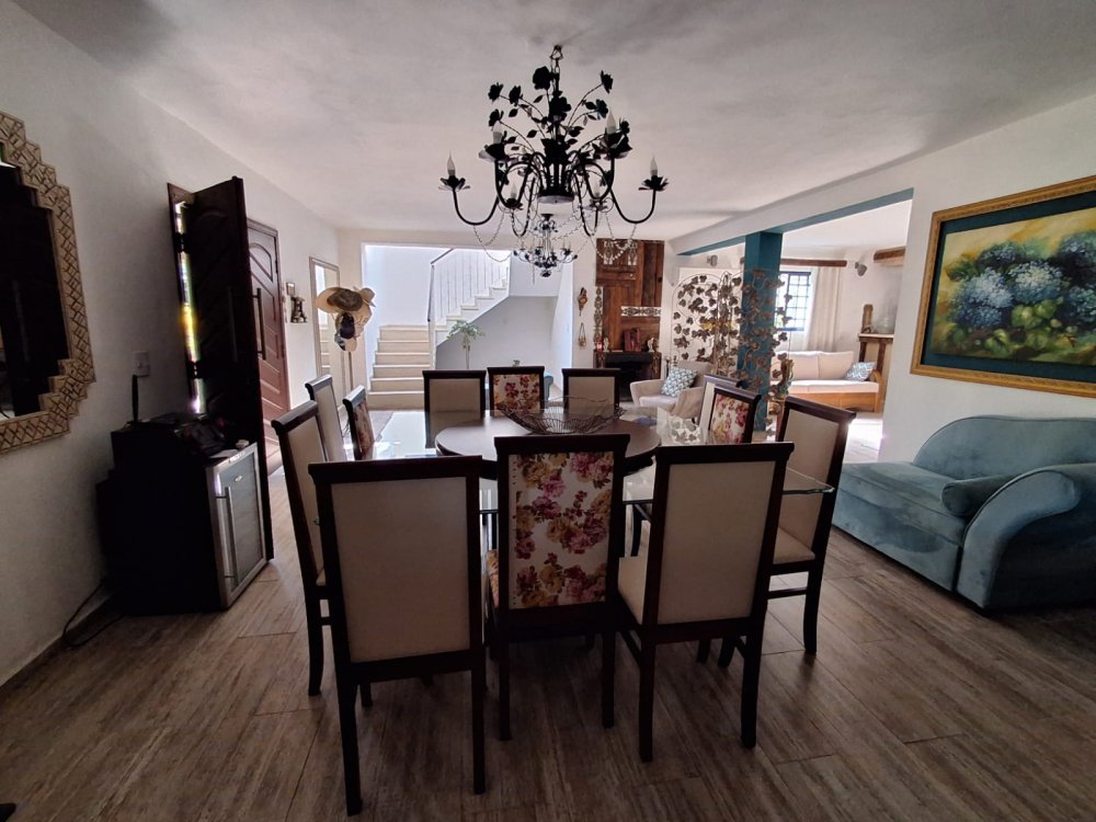 BENFEITORIAS: BELA ACONCHEGANTE E CONFORTÁVEL SEDE, TOTALMENTE MOBILIADA E DECORADA COM FINO GOSTO, contendo: 5 dormitórios (3 suítes), amplas salas de estar e jantar, cozinha completa, despensa, VARANDA FRONTAL VOLTADA PARA OS JARDINS, com grande mesa em MADEIRA MACIÇA compondo a ÁREA GOURMET com churrasqueira, forno e fogão à lenha. BRINQUEDOS INFANTIS: Casa de boneca, escorregador, mirante e outros.