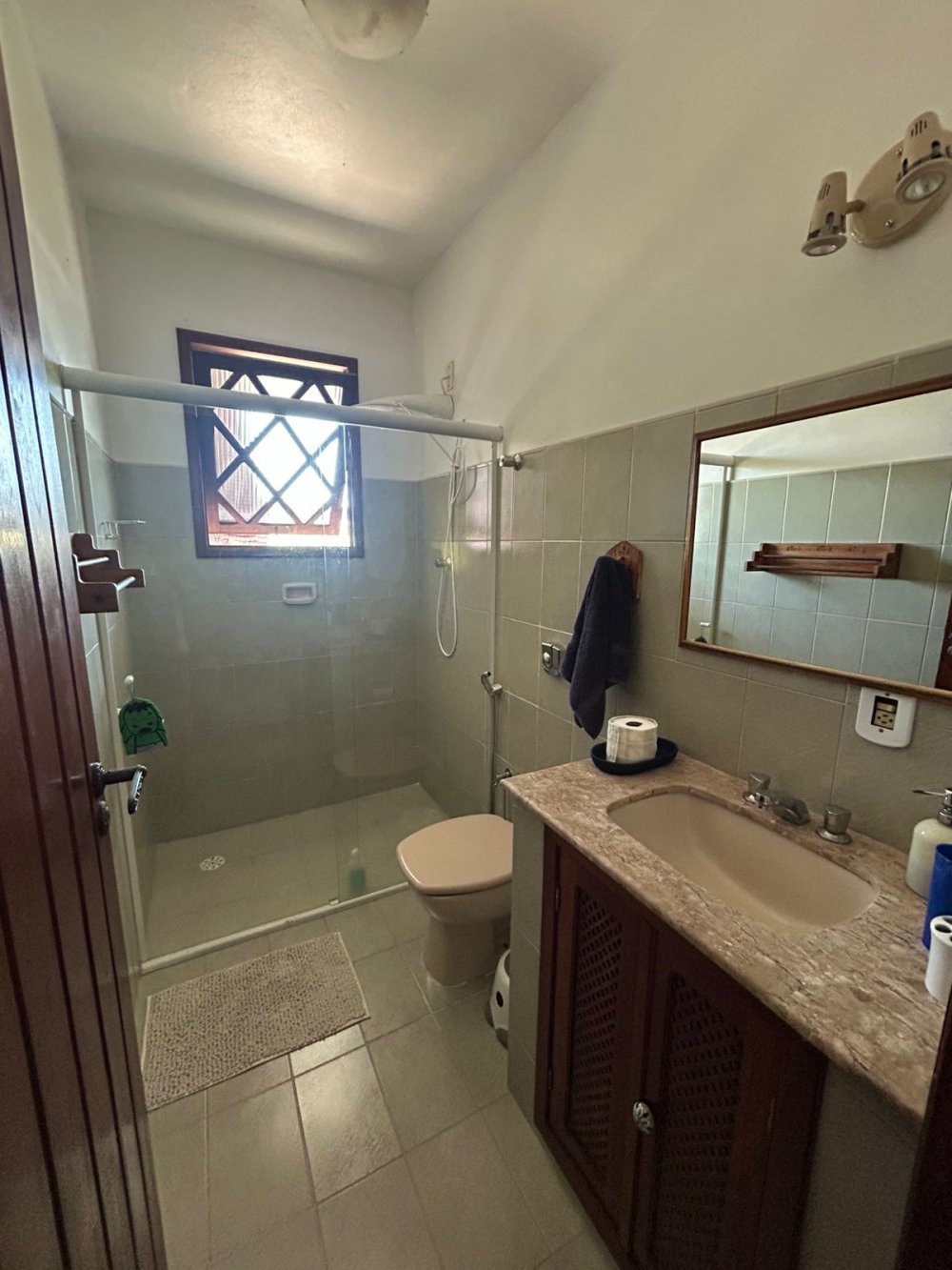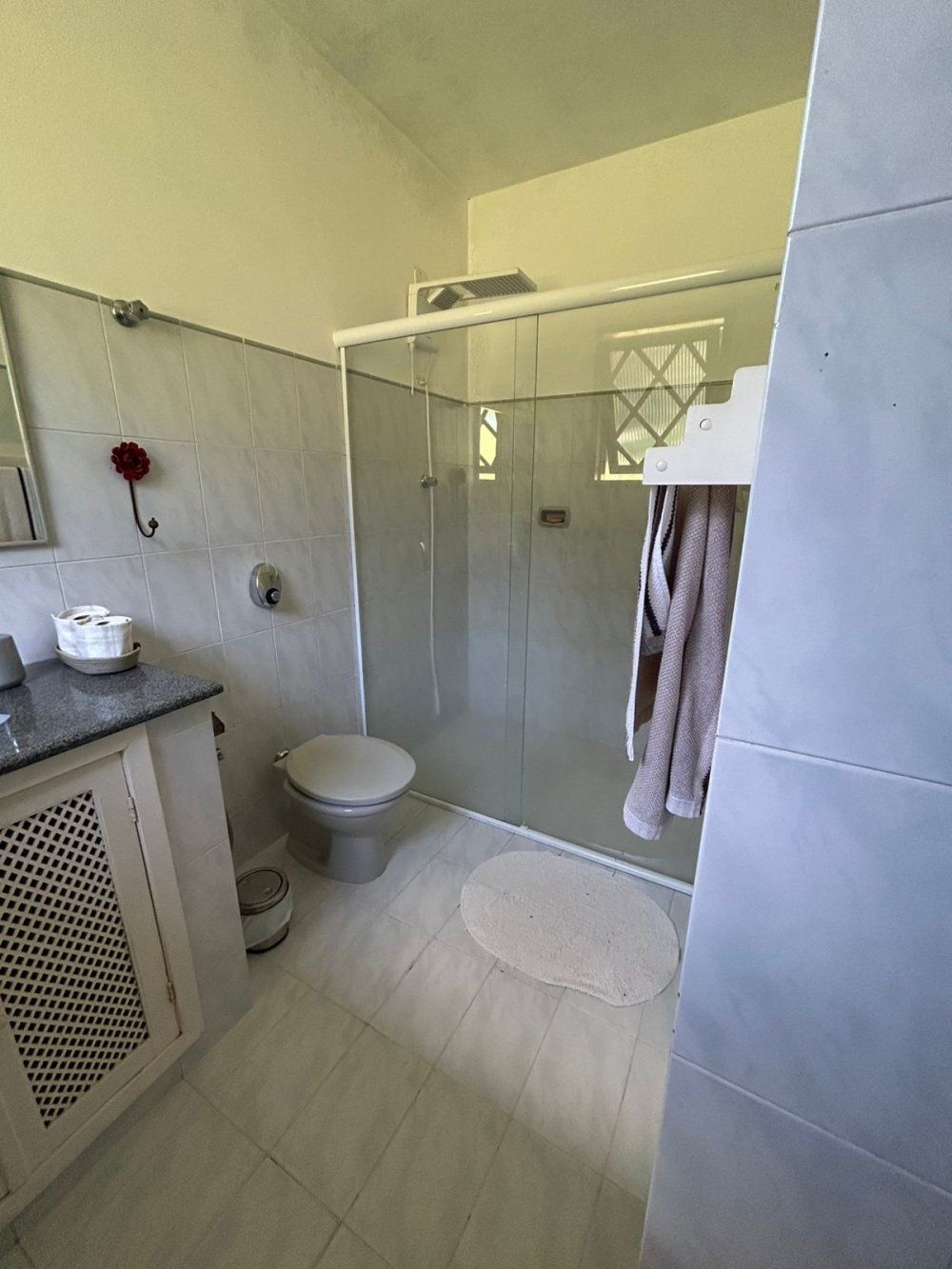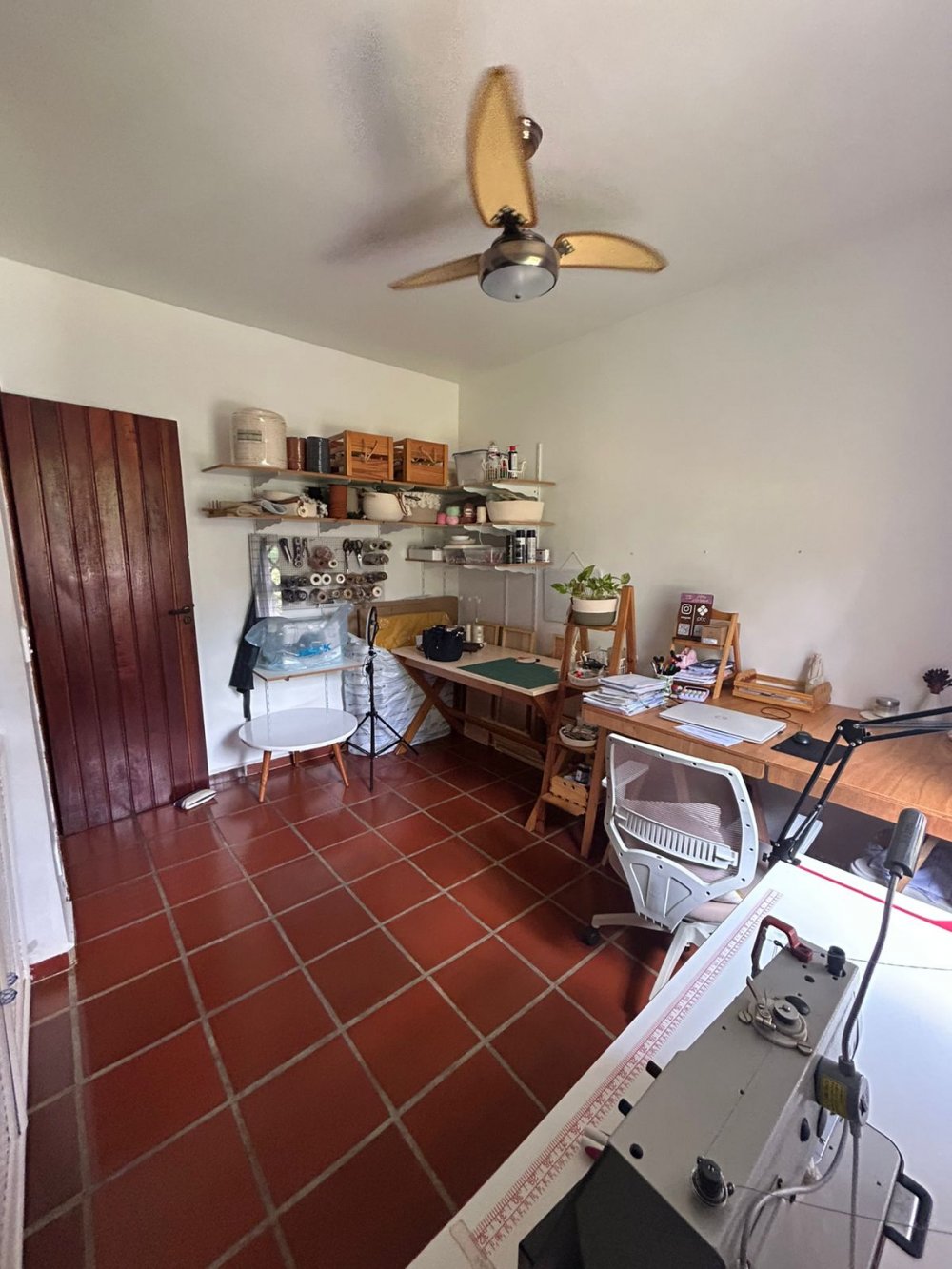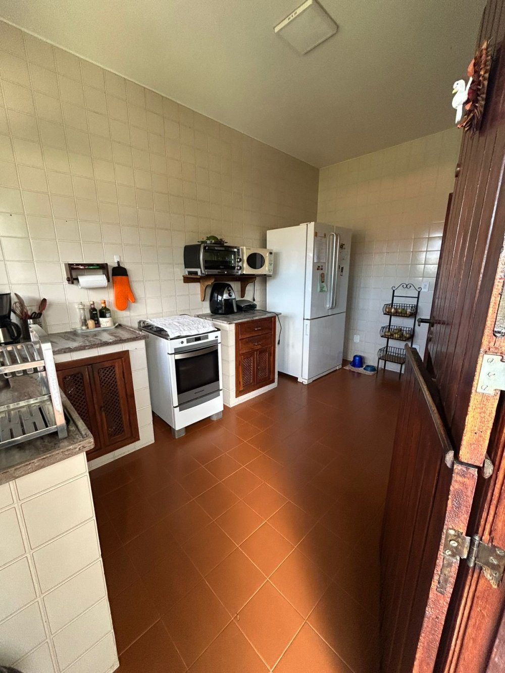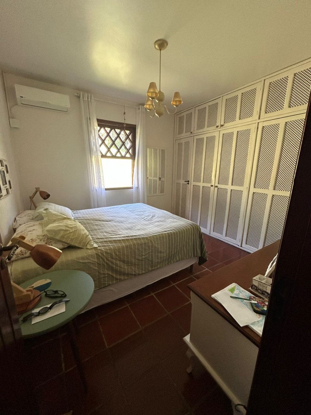 Construção com tijolos deitados, piso em cerâmica, teto com madeirames em massaranduba, cozinha com revestimento em azulejo até o teto, banheiros e área de serviço com revestimento ½ parede, ar-condicionado na suíte e 1 dos quartos, armários embutidos em todos os quartos e com tampos de mármore nos banheiros e na cozinha, portas e janelas em treliça de cedro e vidro, banheiros com box blindex; Ventiladores de teto, lustres/luminárias inclusos;