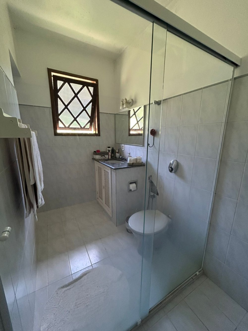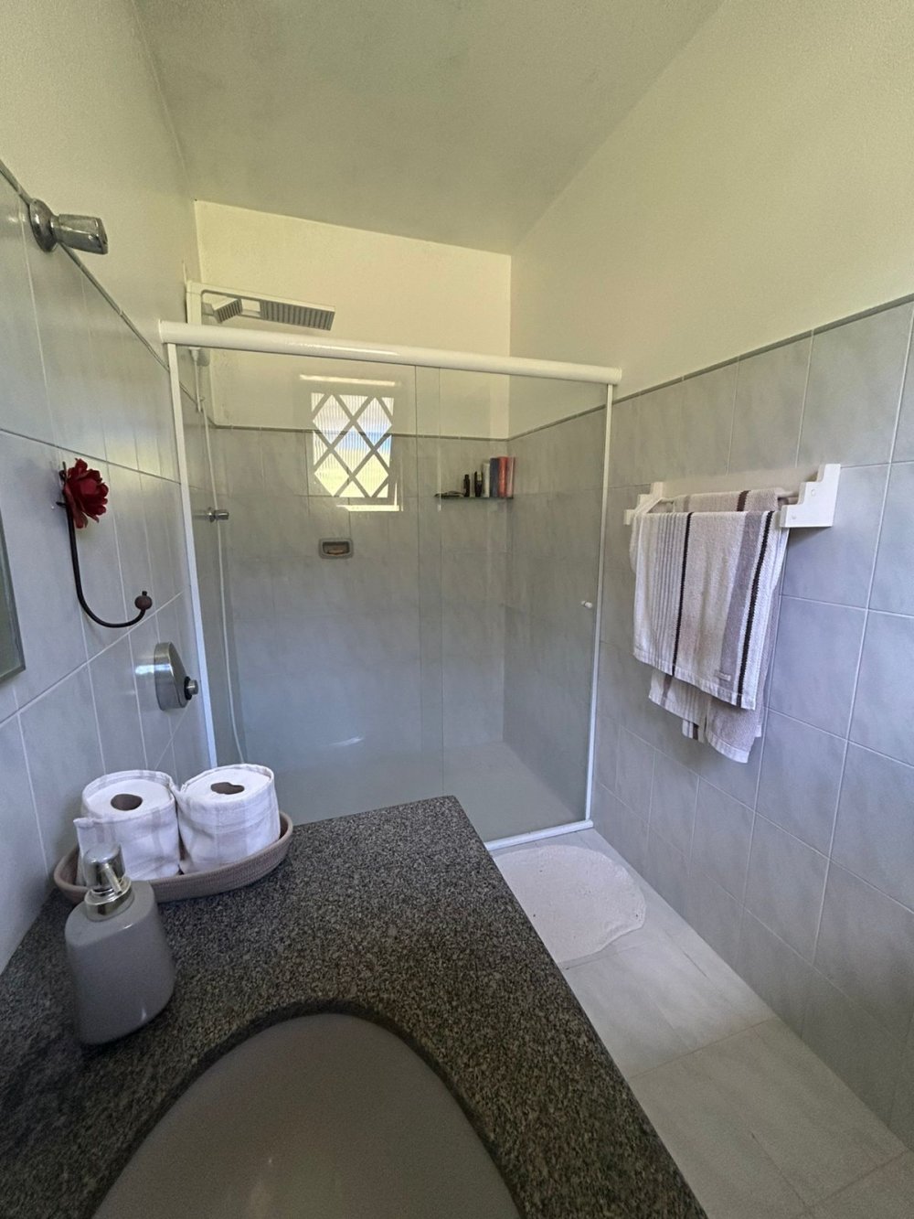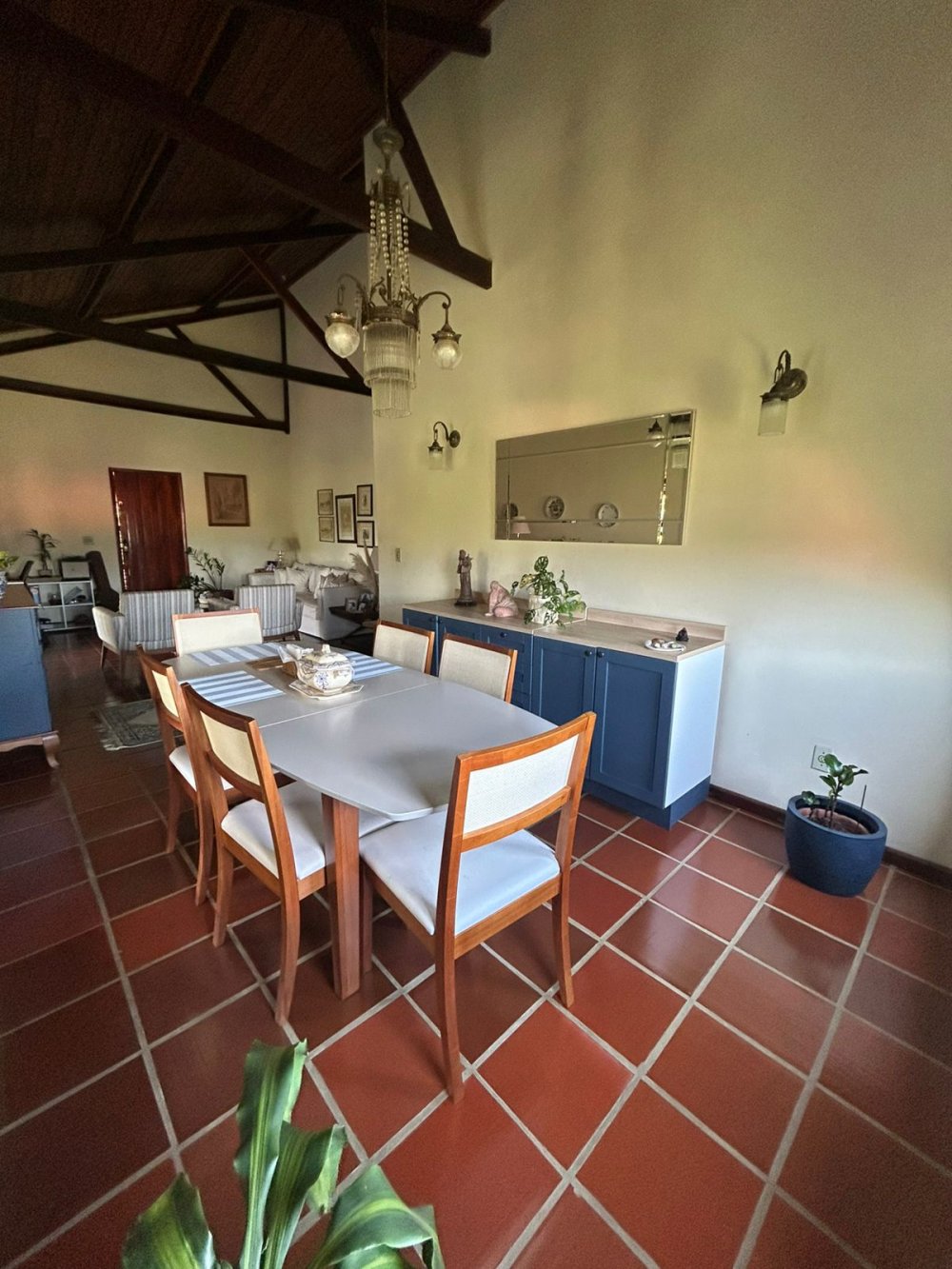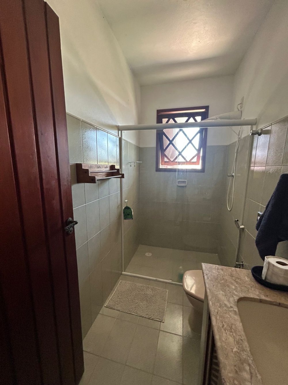 Construção com tijolos deitados, piso em cerâmica, teto com madeirames em massaranduba, cozinha com revestimento em azulejo até o teto, banheiros e área de serviço com revestimento ½ parede, ar-condicionado na suíte e 1 dos quartos, armários embutidos em todos os quartos e com tampos de mármore nos banheiros e na cozinha, portas e janelas em treliça de cedro e vidro, banheiros com box blindex; Ventiladores de teto, lustres/luminárias inclusos;