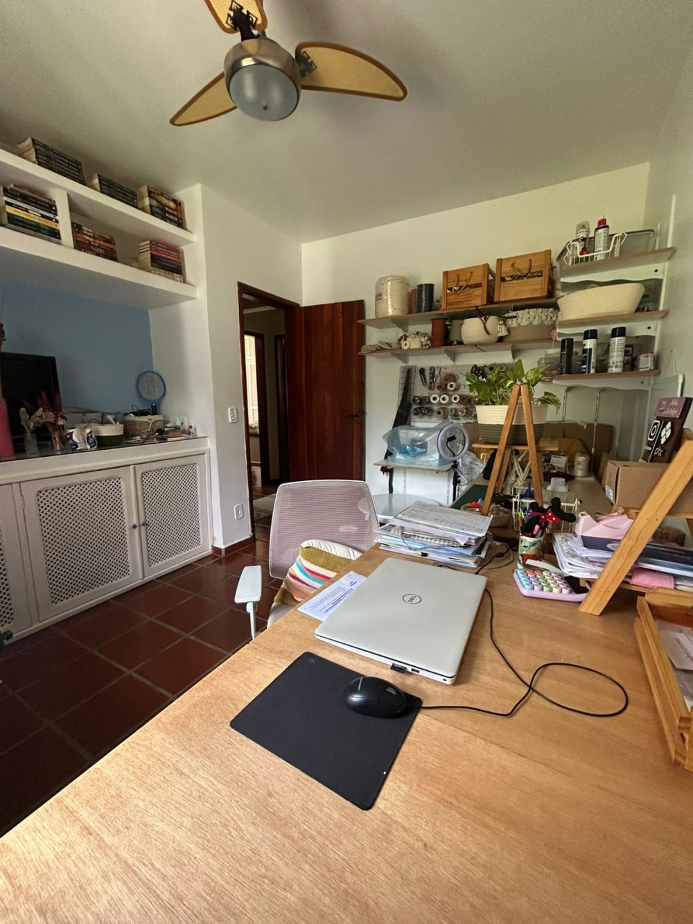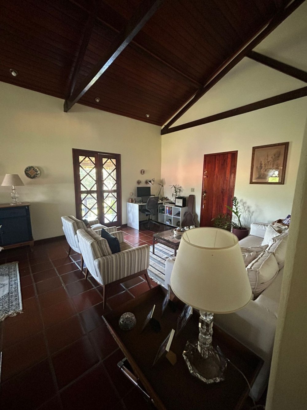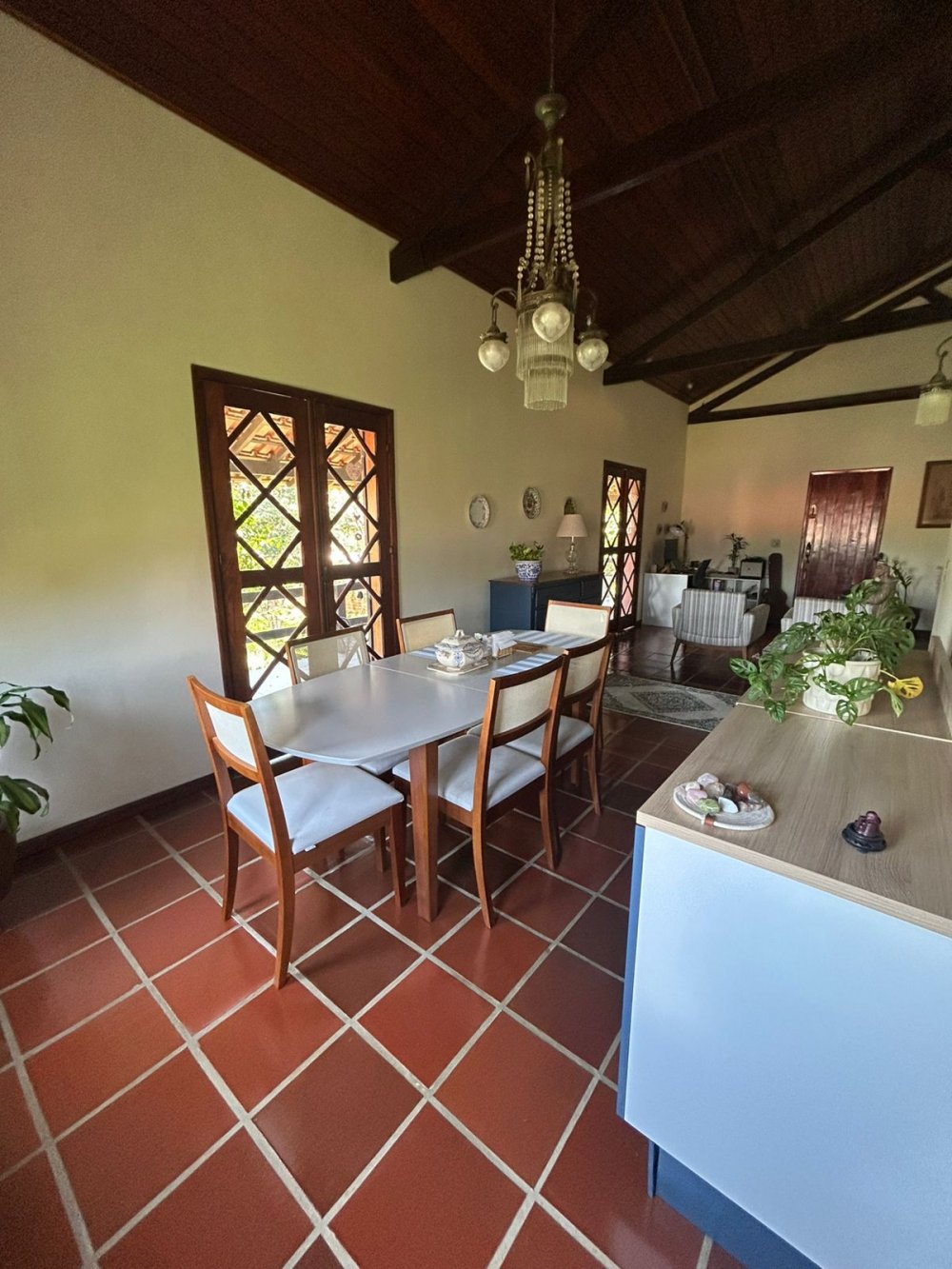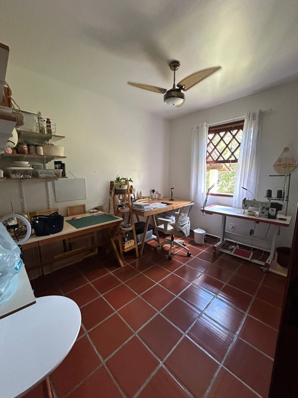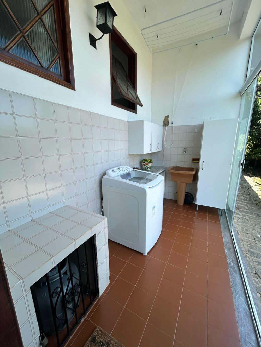 Construção com tijolos deitados, piso em cerâmica, teto com madeirames em massaranduba, cozinha com revestimento em azulejo até o teto, banheiros e área de serviço com revestimento ½ parede, ar-condicionado na suíte e 1 dos quartos, armários embutidos em todos os quartos e com tampos de mármore nos banheiros e na cozinha, portas e janelas em treliça de cedro e vidro, banheiros com box blindex; Ventiladores de teto, lustres/luminárias inclusos;