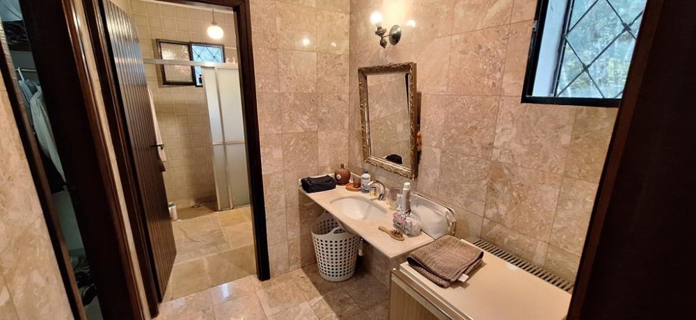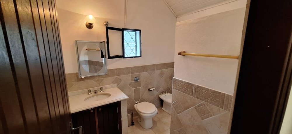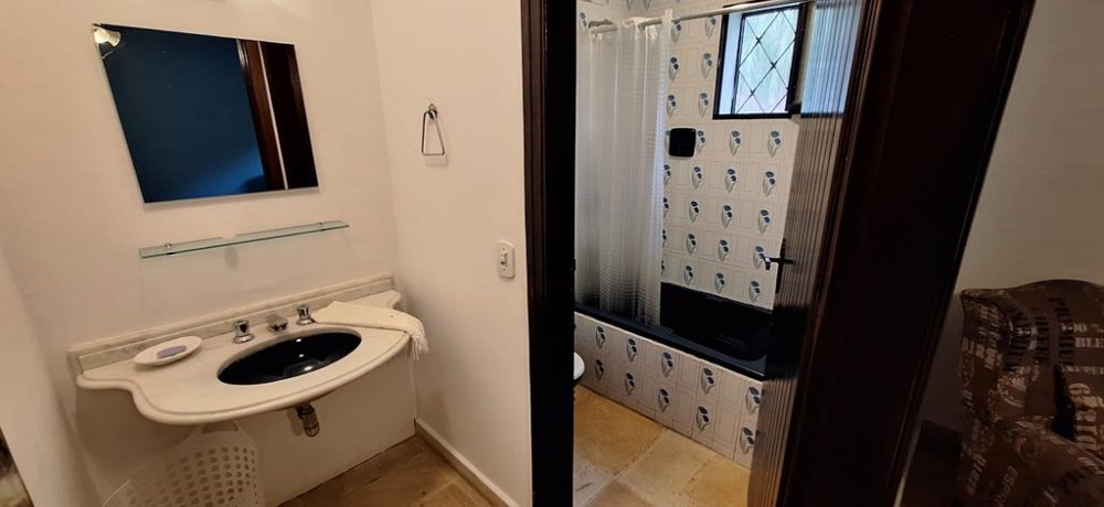 ACABAMENTO: Todo a estrutura com madeiramento em Aroeira, piso frio, portas balcão com telas mosquiteira, azulejos e revestimentos, lavatórios com bancada em mármore, pia inox com abrigo e bancada com gabinete, armários embutidos, ares condicionados, lustres, arandelas, AQUECIMENTO CENTRAL ELÉTRICO. PISO INFERIOR: Garagem para 4 autos, depósito e casa de máquina da piscina, anexos. ACESSOS INTERNOS BLOQUETADOS E CASCALHADOS COM GUIAS, margeando EXTENSO JARDIM ILUMINADO, com gramado impecável.