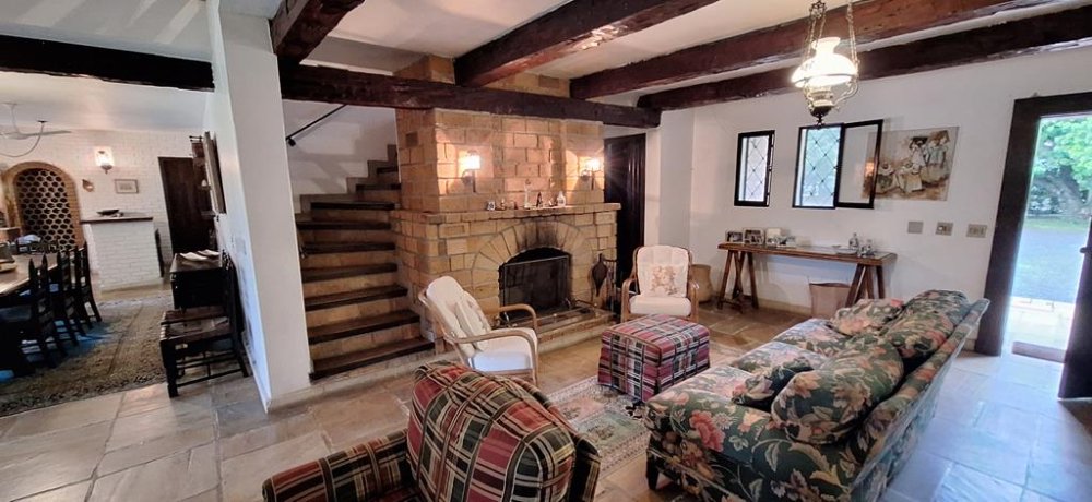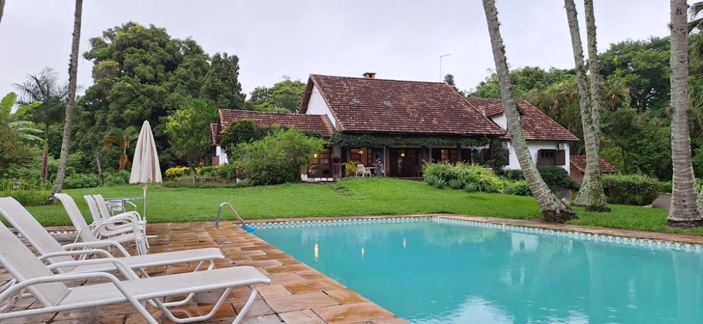 BENFEITORIAS: SEDE com 510,00m2 de área de construção sólida e extremamente charmosa contendo: PISO TÉRREO: 3 suítes (1 máster com banheira e closet), Sala estar 2 ambientes com lareira, lavabo social, sala jantar, ADEGA COM BAR ANEXO, despensa, copa/cozinha, área de serviço, quarto e WC empregada. PISO SUPERIOR/MEZANINO: Ampla sala de estar, banheiro social, 4 dormitórios (1 suíte), sacadas, PISCINA 6mx12m.