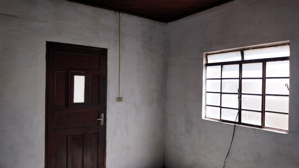 Piso frio, banheiro ½ azulejado, forro de ripa de madeira na sala.