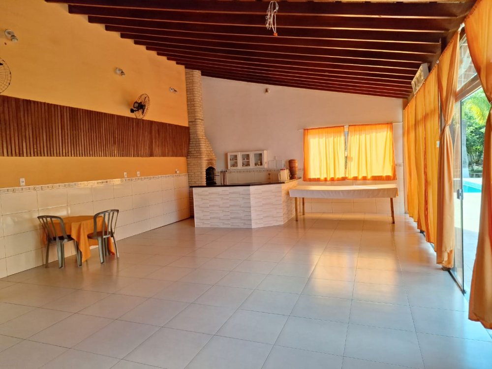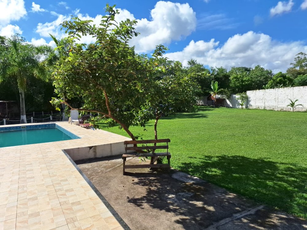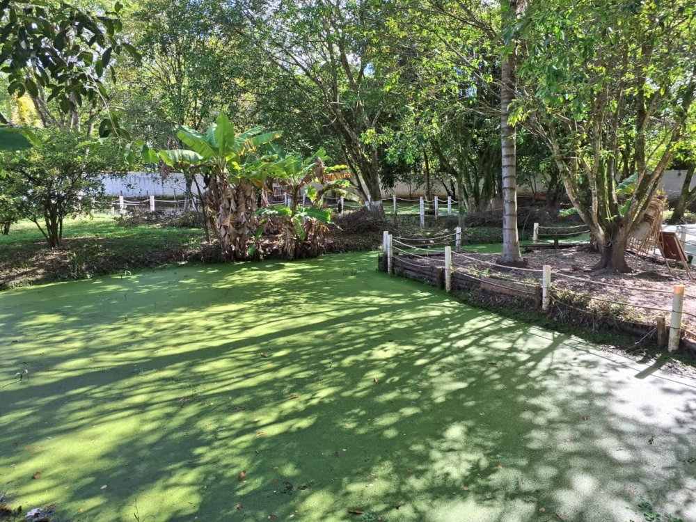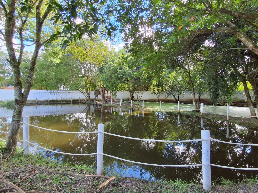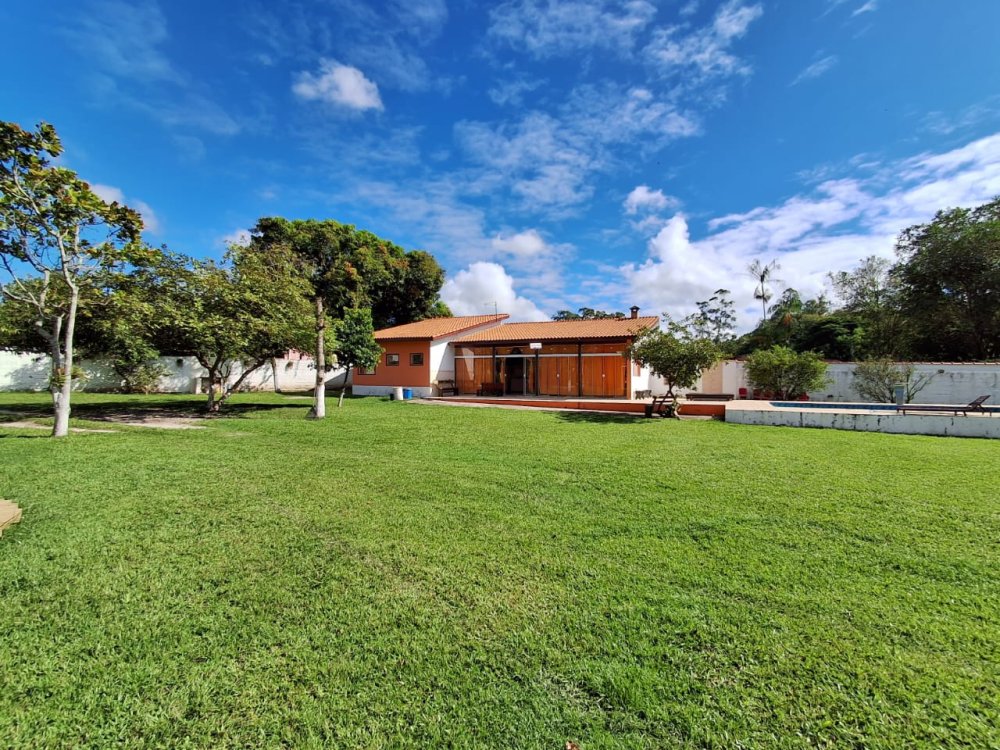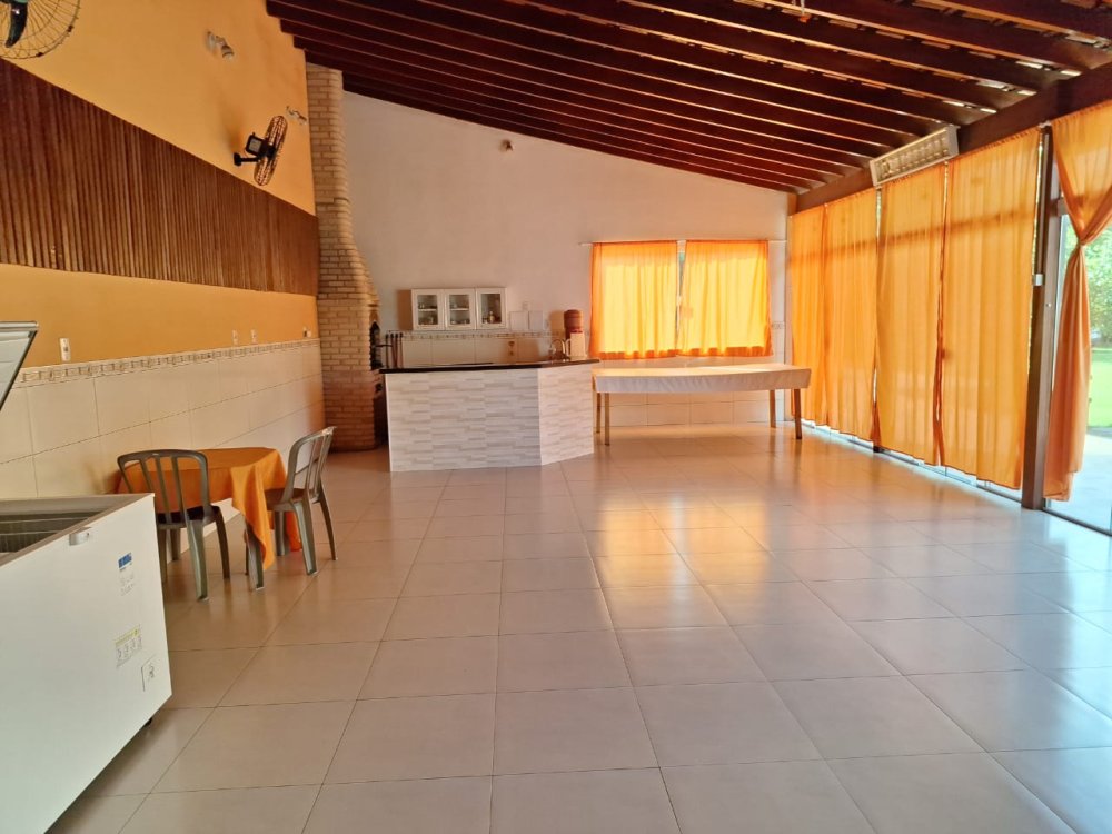2.189m2 de área totalmente murada contendo um salão de festas com churrasqueira, banheiro masculino e feminino, 2 quartos, piscina (3x6), 3 lagos, pomar com diversas árvores frutíferas, poço artesiano, deck e capela.