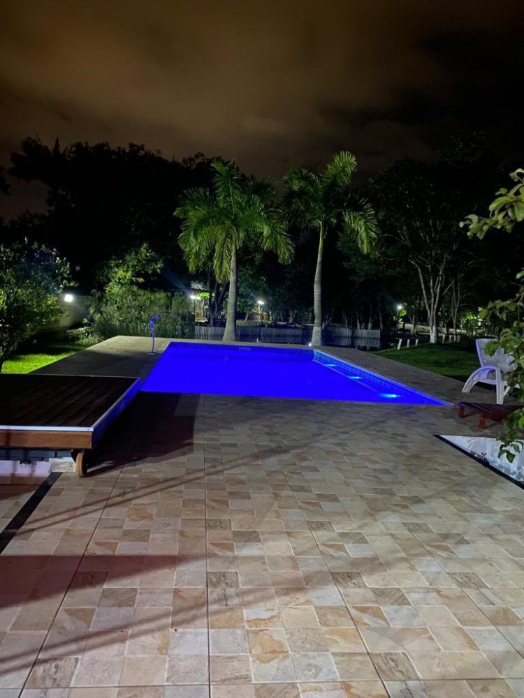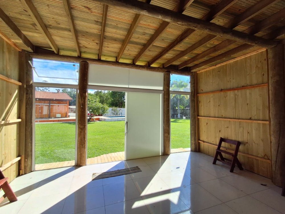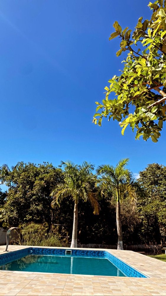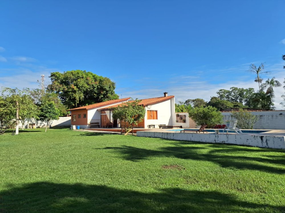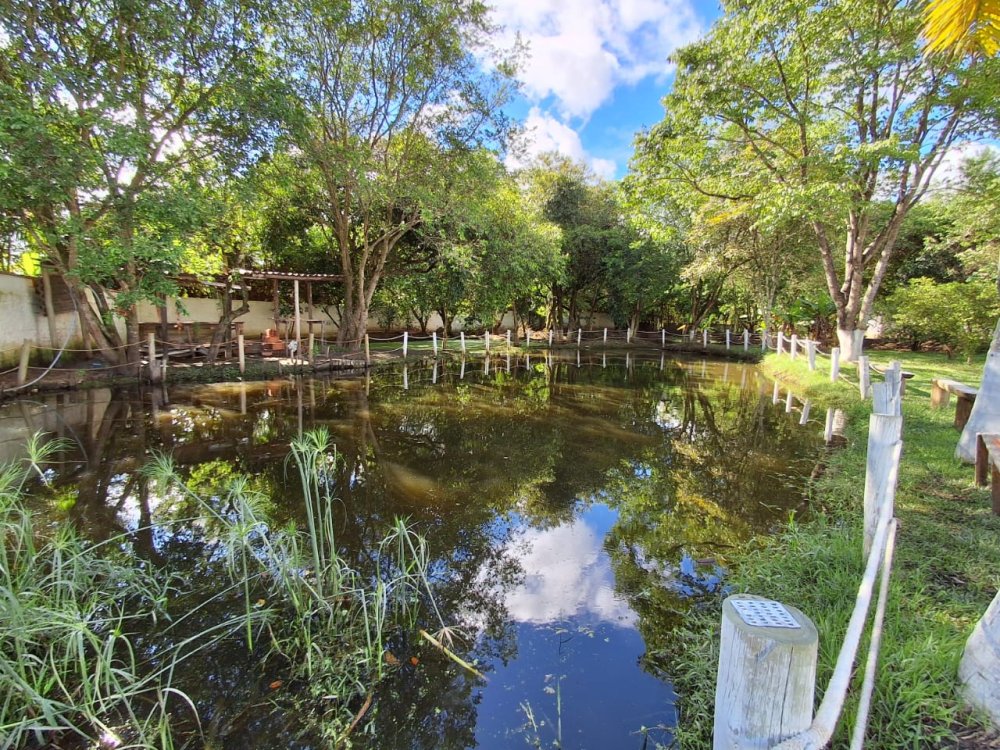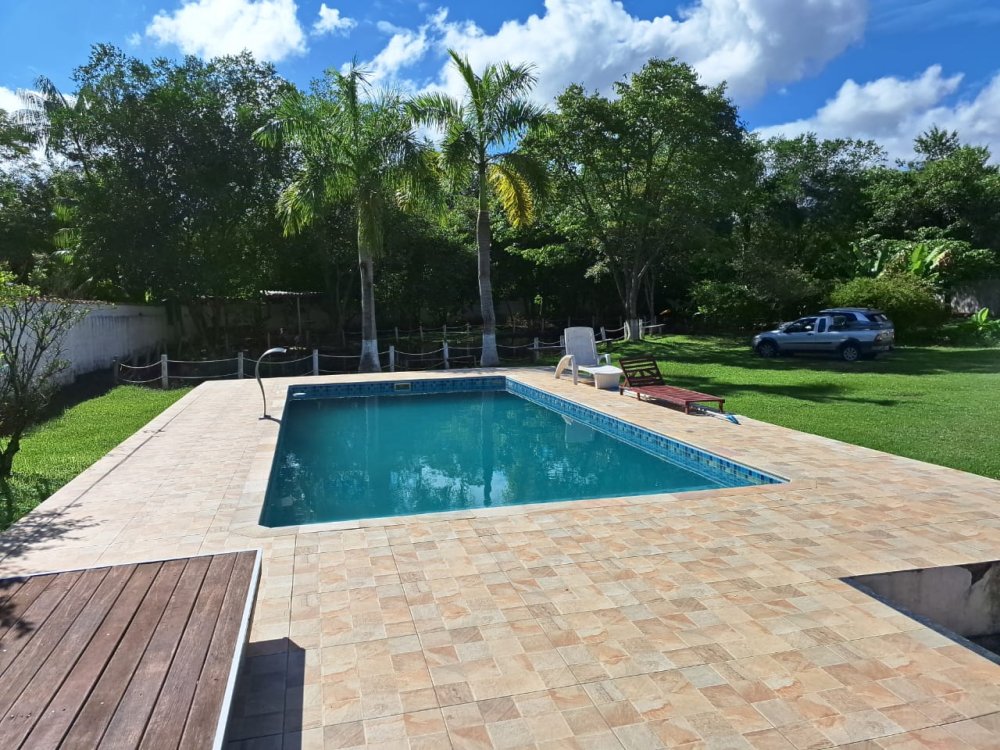 2.189m2 de área totalmente murada contendo um salão de festas com churrasqueira, banheiro masculino e feminino, 2 quartos, piscina (3x6), 3 lagos, pomar com diversas árvores frutíferas, poço artesiano, deck e capela.