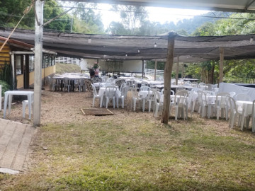 BENFEITORIAS: SEDE: 4 dormitórios (2 suítes), sala, 2 banheiros, varanda. RESTAURANTE CAPACIDADE 100 PESSOAS, bem construído, PRONTO PARA FUNCIONAR, com câmara fria, instalações de cozinha e bar, frente envidraçada para o ribeirão, amplo estacionamento, espaço para lazer e contemplação.