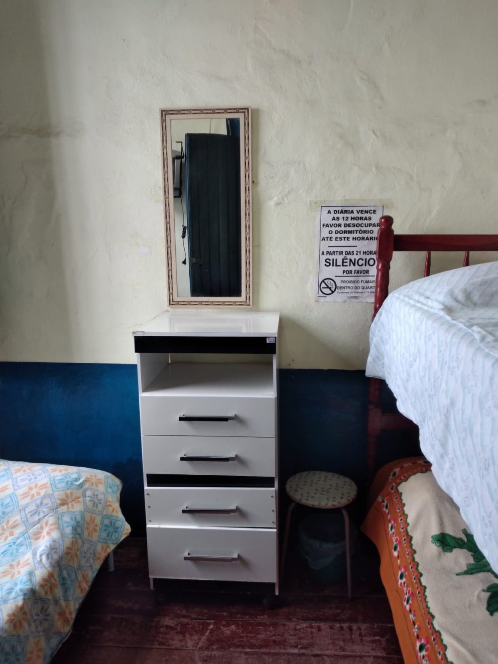 Piso frio e assoalho de madeira.
