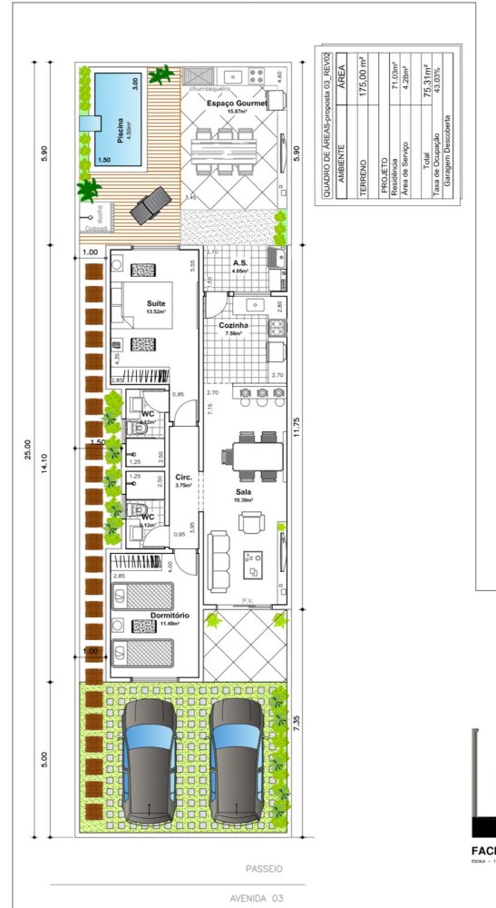 - Terreno Fundo: 25 m