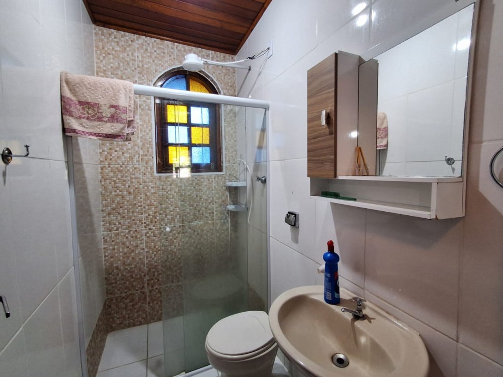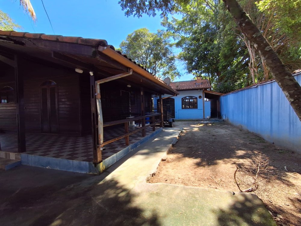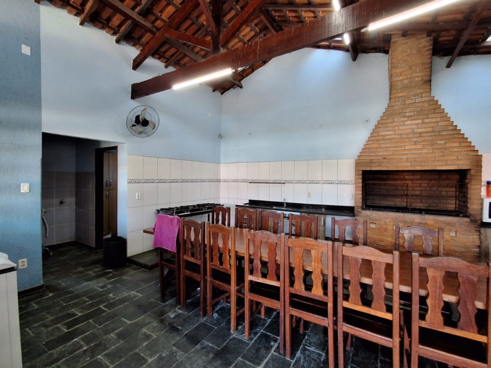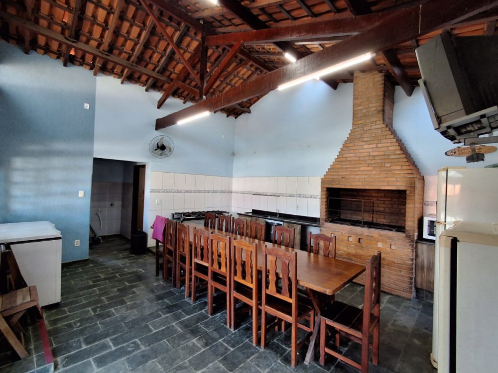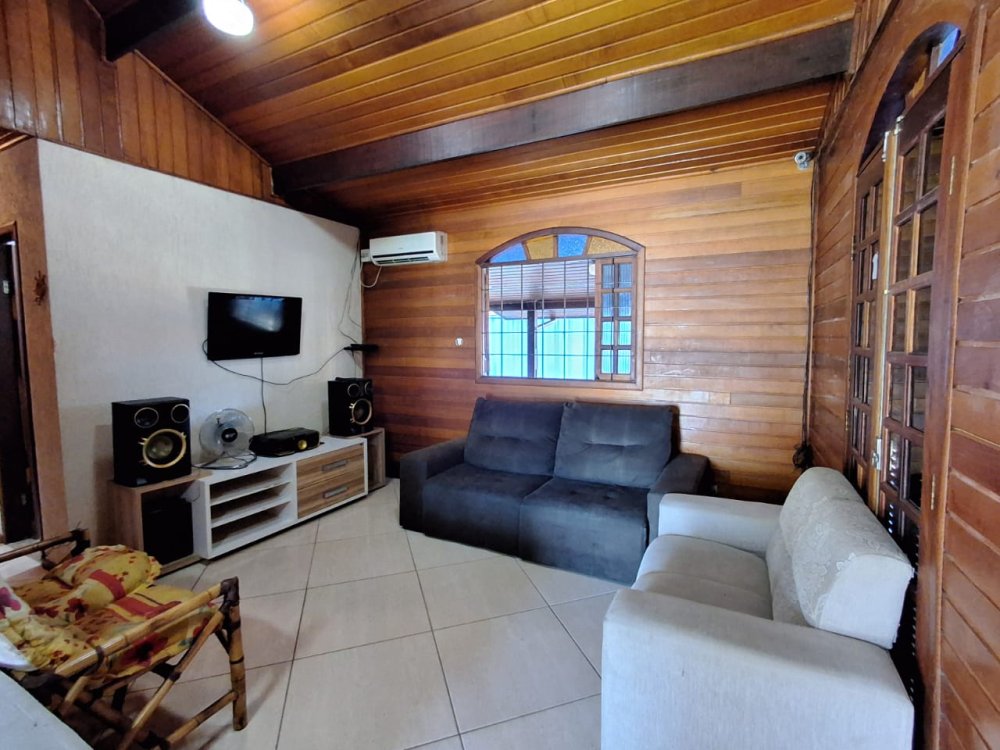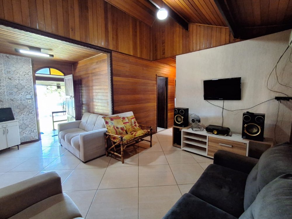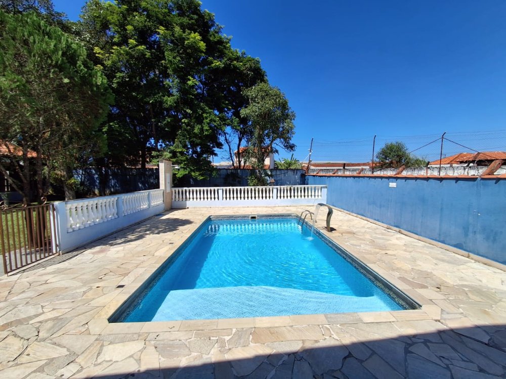BENFEITORIAS: CASA DE MADEIRA COM VARANDADA EM "U", contendo: 3 dormitórios, sala, banheiro social, grande varanda. COZINHA SEPARADA com churrasqueira, banheiro e quarto de despejo. AMPLO SALÃO (ÁREA GOURMET), com churrasqueira, forno e fogão à lenha, banheiros masculino e feminino, área toda cercada por balaústres, em torno da piscina (3,5x7), com cascata.