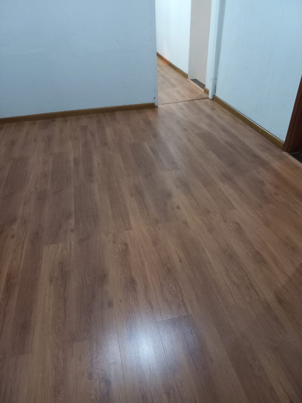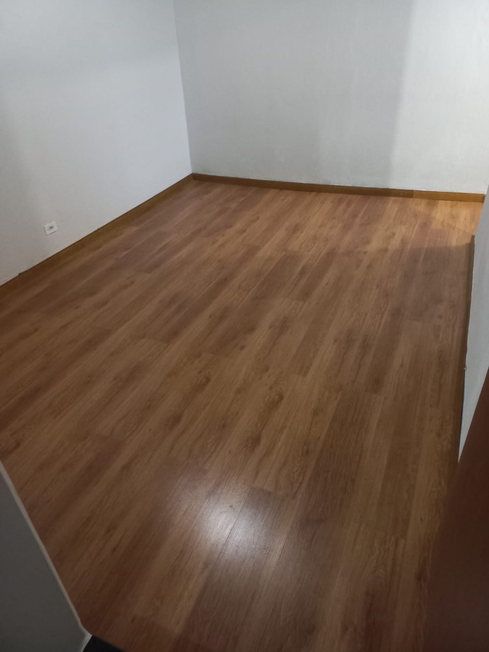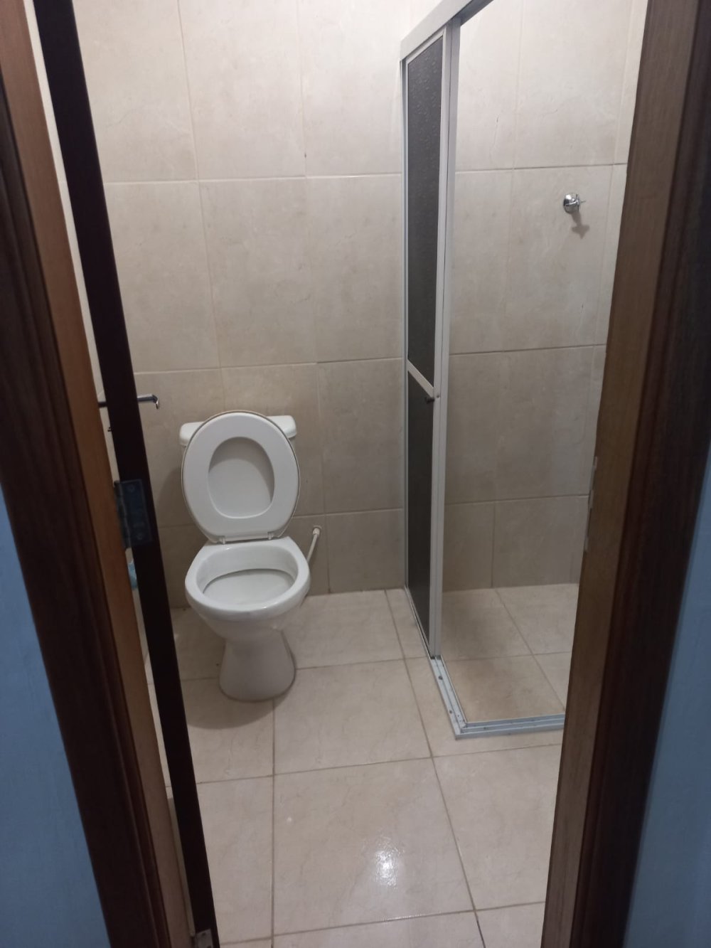 Piso frio e laminado, laje, cozinha e banheiro azulejados até o teto, box acrílico, ventilador de teto na sala.