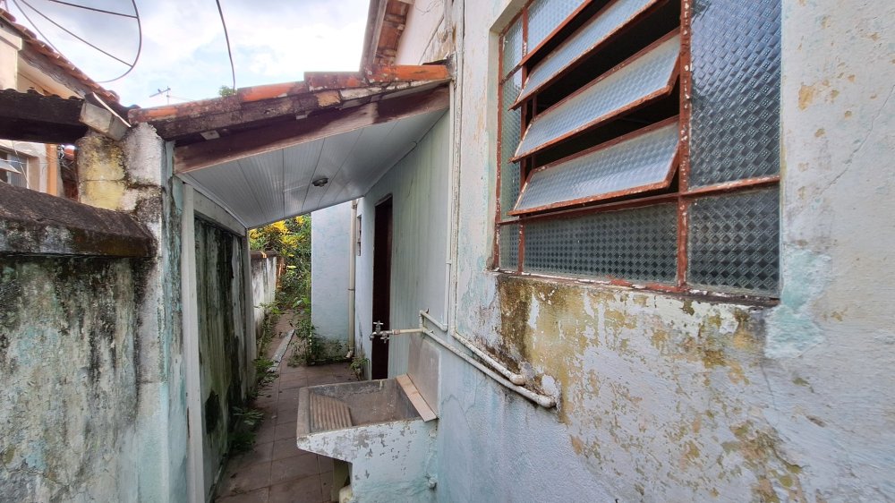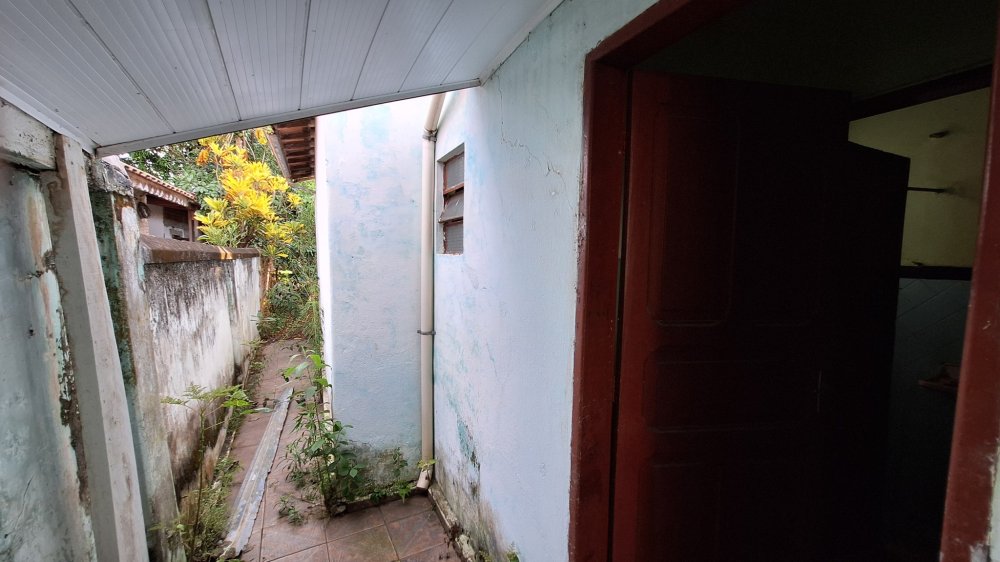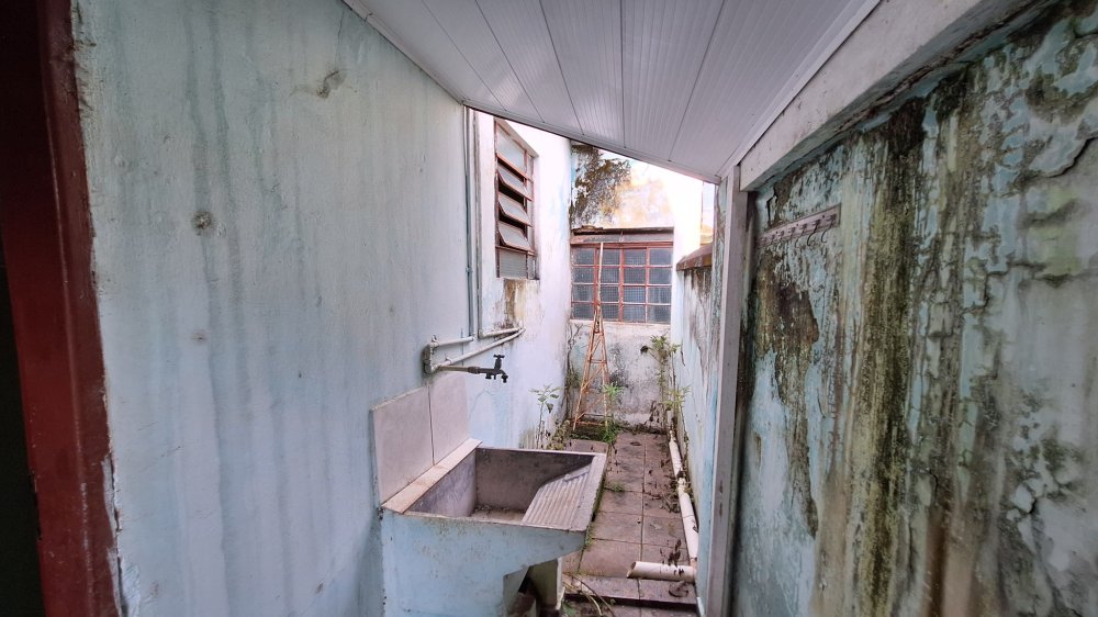 Piso cerâmica, forro pvc e madeira, vitrôs de ferro.