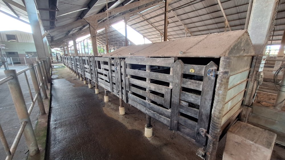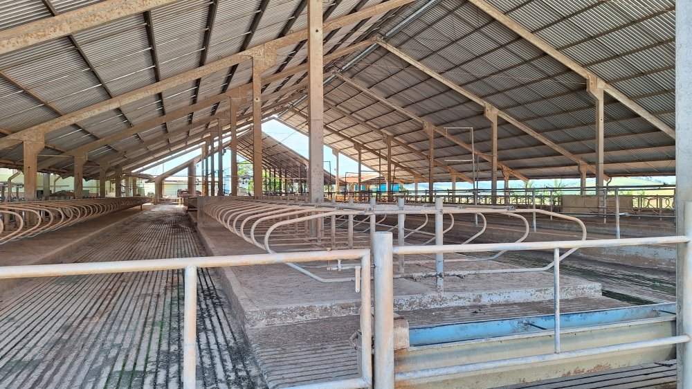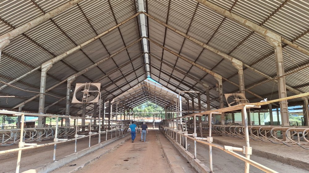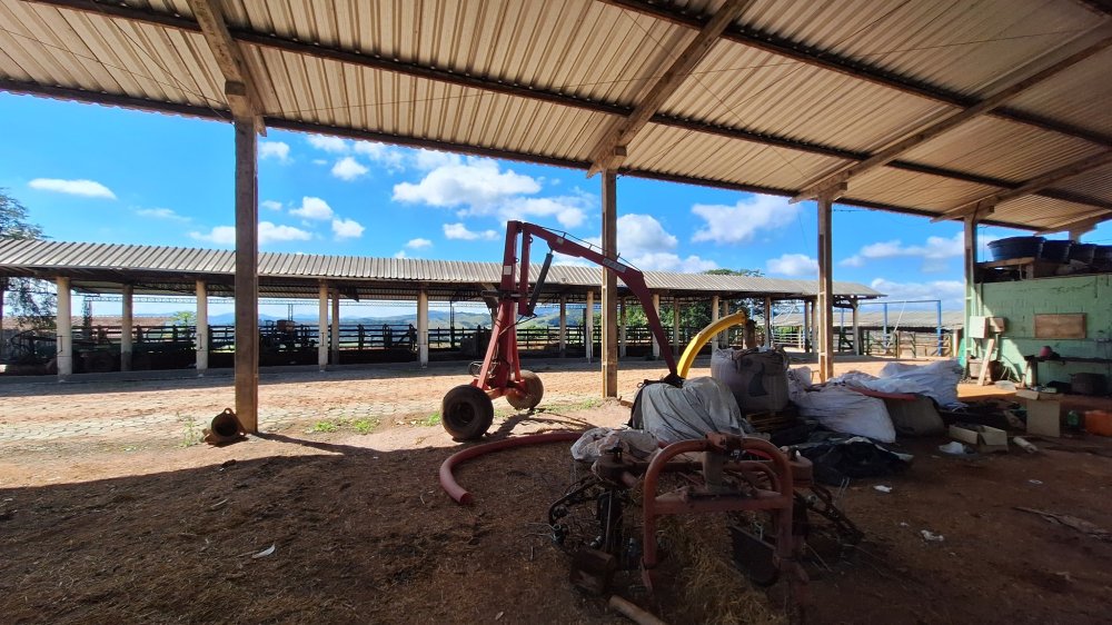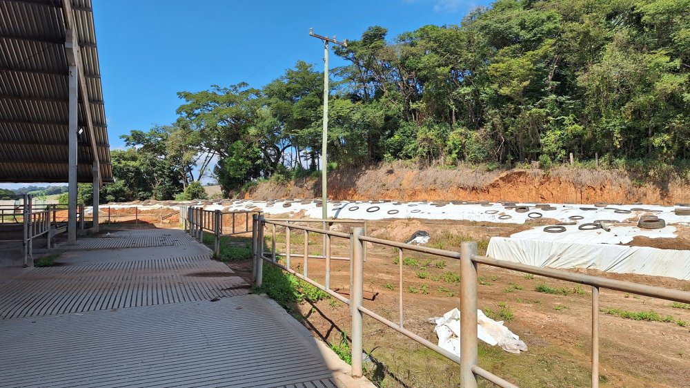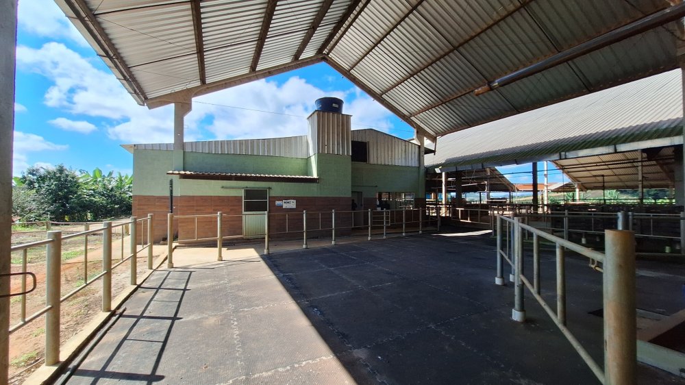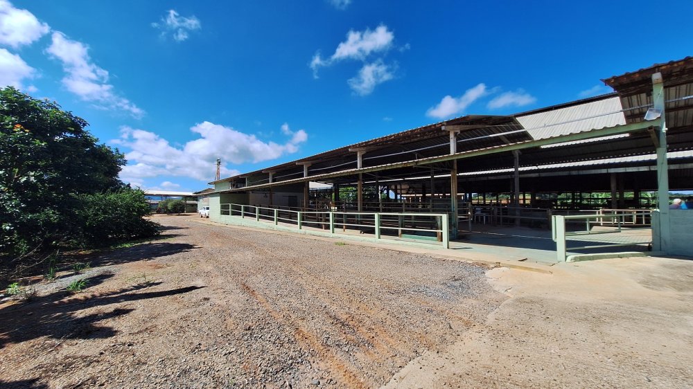 BENFEITORIAS DE OPERAÇÕES: ESTRUTURA PARA PRODUÇÃO DE LEITE, SÓLIDA E BEM PROJETADA, contendo: "Free Stall" com 460 camas ou 460 vacas (mudando para "Compost barn" comporta 800 vacas; Galpão preparado para reinstalação de grande ordenhadeira; sala de espera toda calçada para vacas; Barracões para máquinas, depósito de Ração; Barracão para vacas secas; Centro de Manejo; Laboratório, Farmácia, Escritório com visualização de todas as operações de ordenha; 4 Silos Trincheira para 25 toneladas cada.