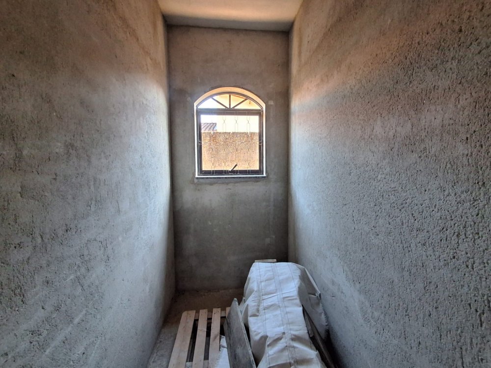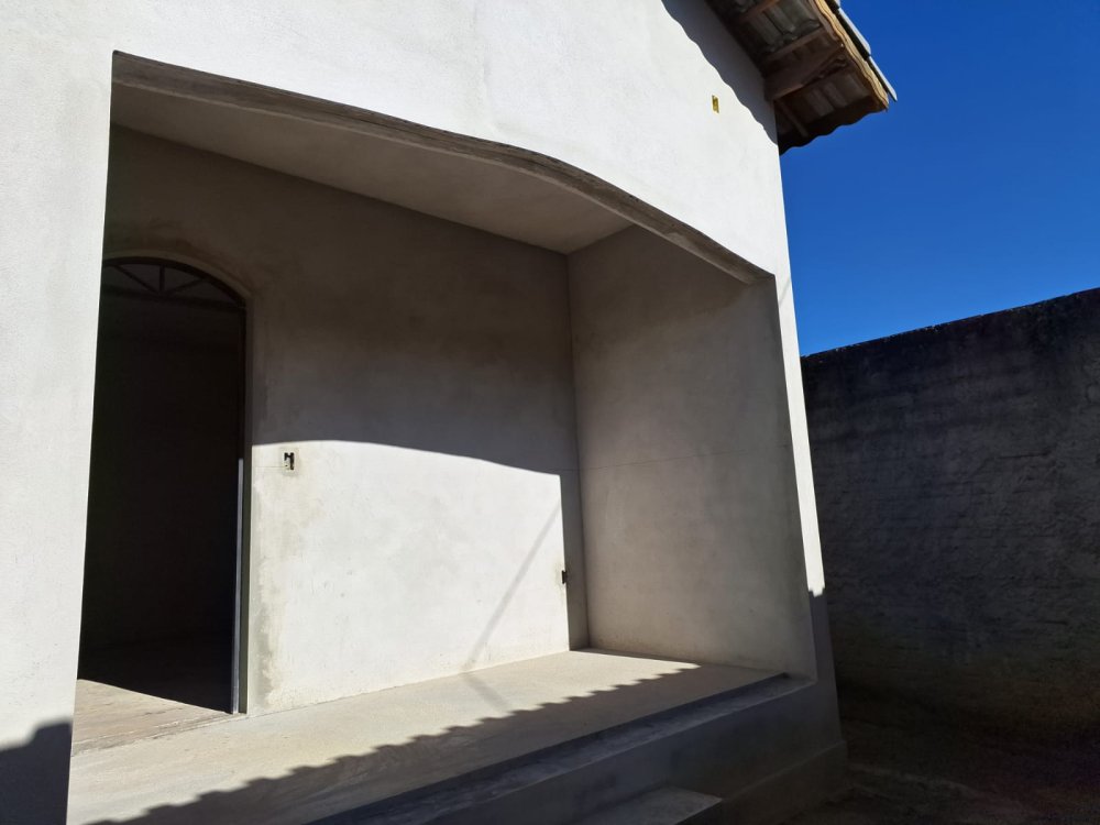 Teto laje, janelas e portas de ferro, falta terminar o restante do acabamento.