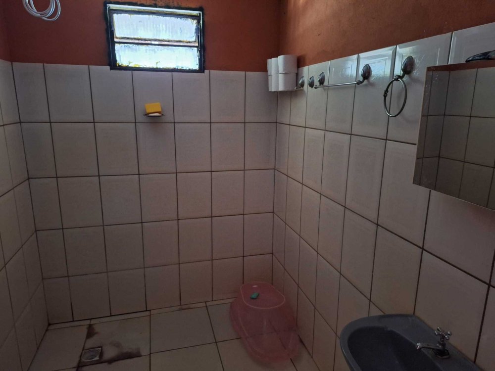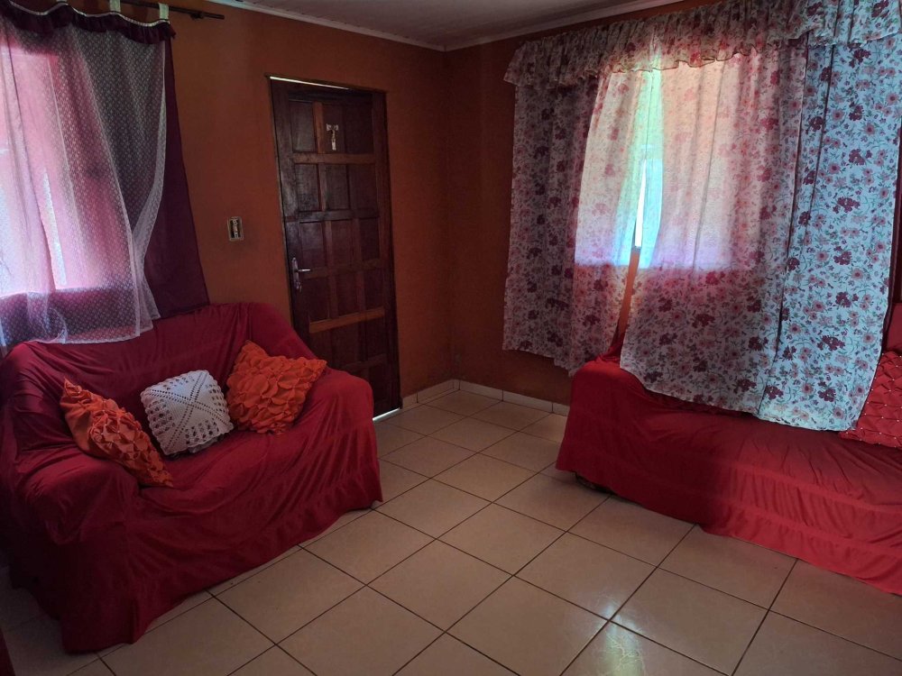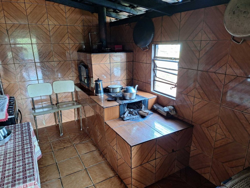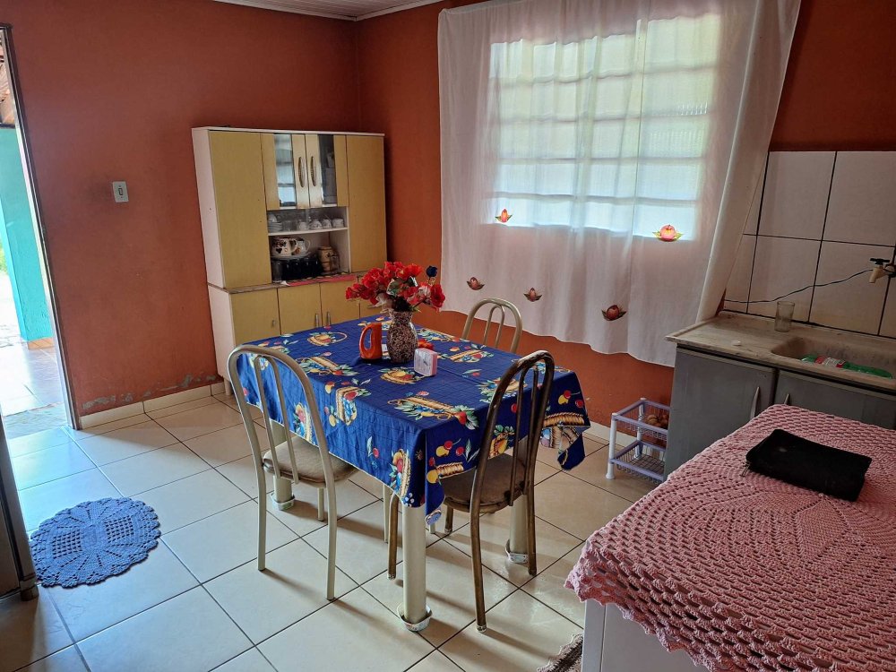 BENFEITORIAS: CASA com 2 dormitórios, sala, banheiro social, cozinha e cozinha com fogão à lenha, varanda, garagem para um auto coberto, local para 4 ou mais descobertos. ACABAMENTO: Piso frio em toda a casa, forro em PVC, revestimentos decorados parte até/teto, parte ½ barra, pia com gabinete, vaso sanitário e lavatório coloridos. Pequenos mangueiro e galinheiro.