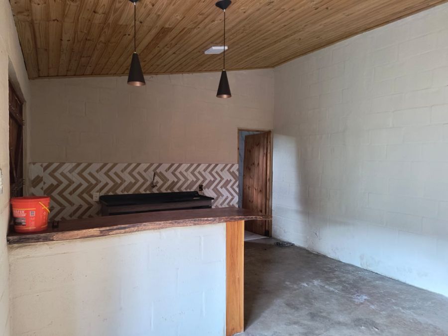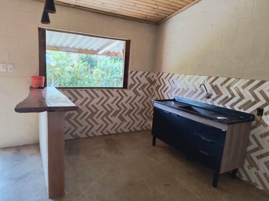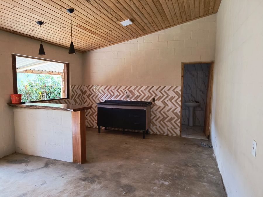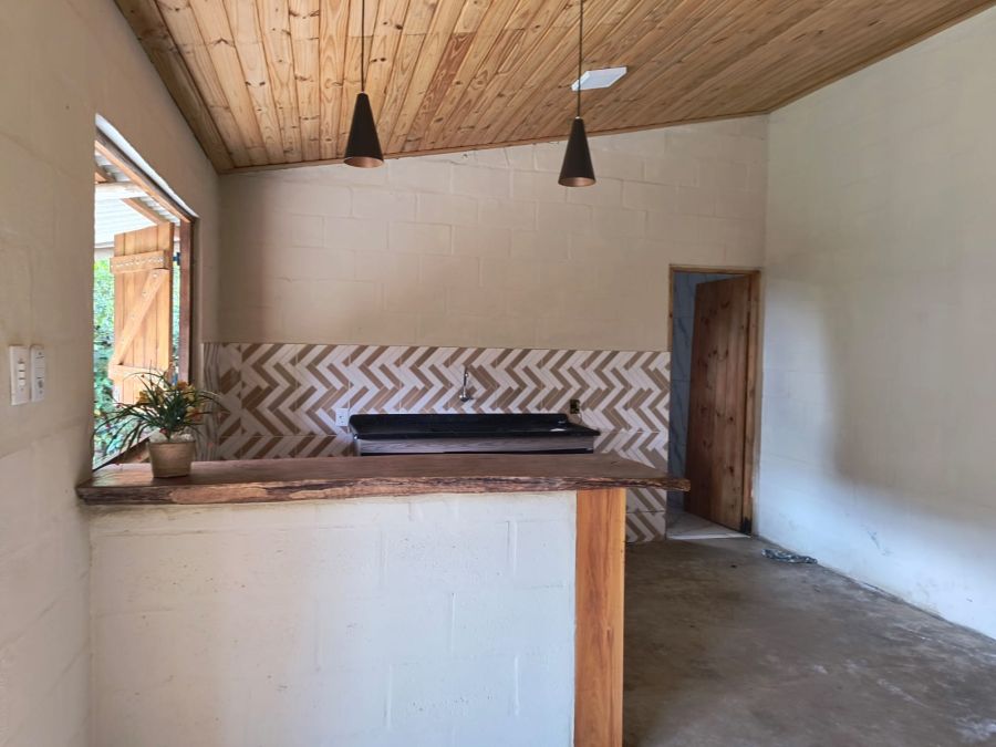 ACABAMENTO: piso cimento queimado, azulejos ½ barra na cozinha Americana, e, até/teto no banheiro com Box Blindex. Forro em madeira, portas internas lisas.