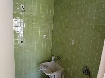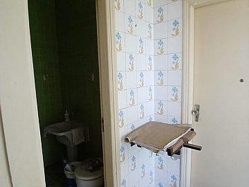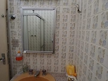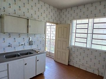 Piso frio e taco, laje, janelas de correr de vidro e ferro com grades de proteção, cozinha e banheiros azulejados até o teto e portão eletrônico.