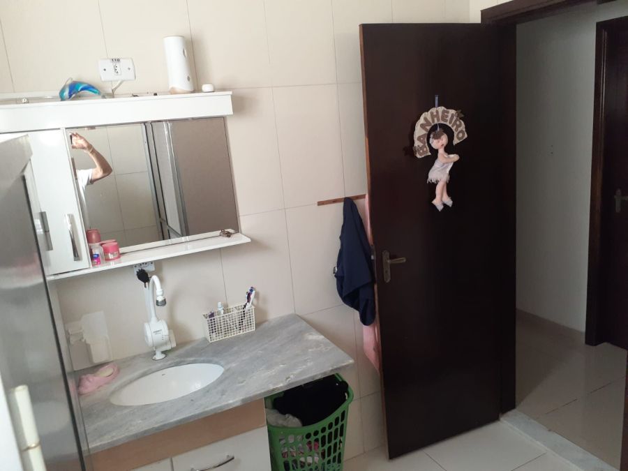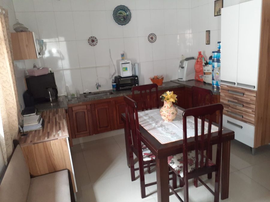 ACABAMENTO: Piso porcelanato, revestimentos até/teto, laje, portas internas de madeira, janelas e vitrôs de ferro e vidro, bancada e pia de granito com cuba inox e gabinete em toda a extensão, vasos sanitários, lavatórios de louças com bancadas em mármore e gabinetes, boxes de acrílico.
