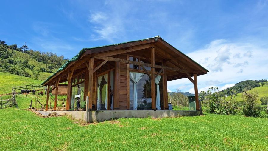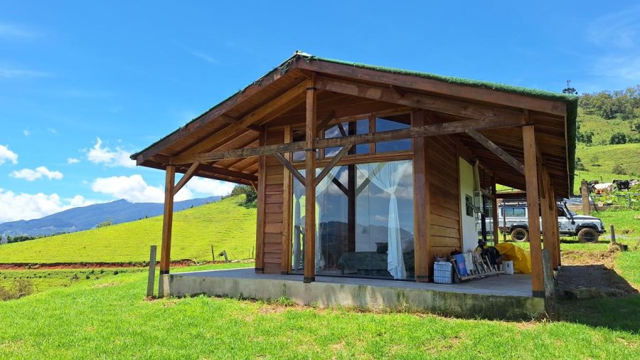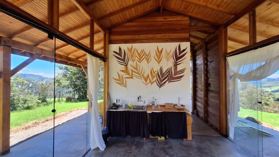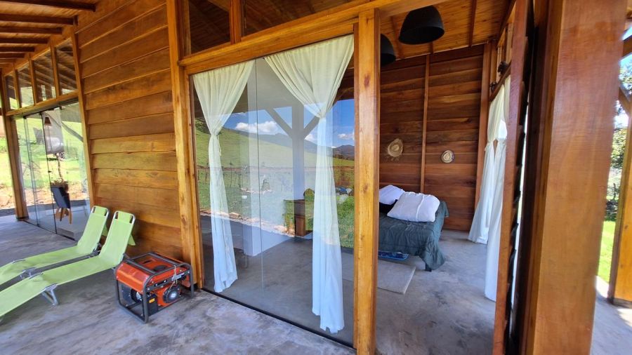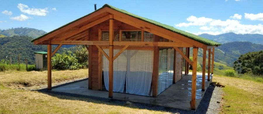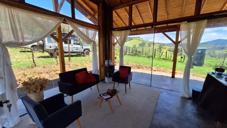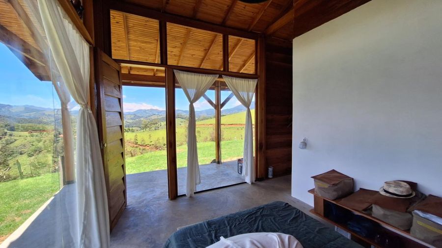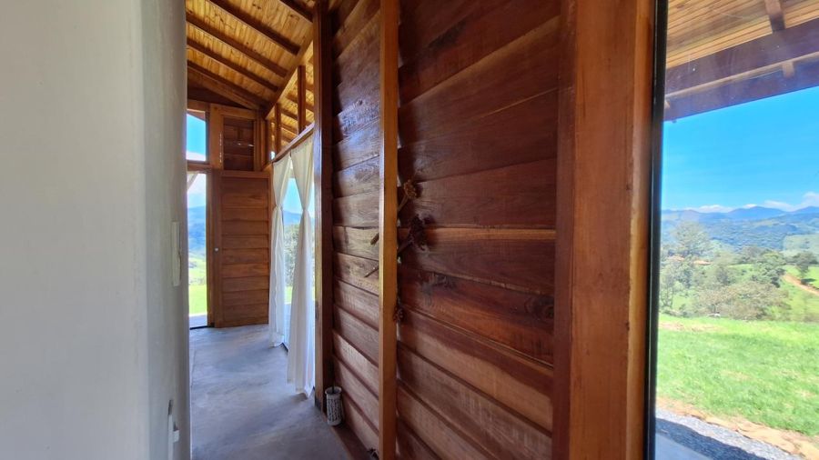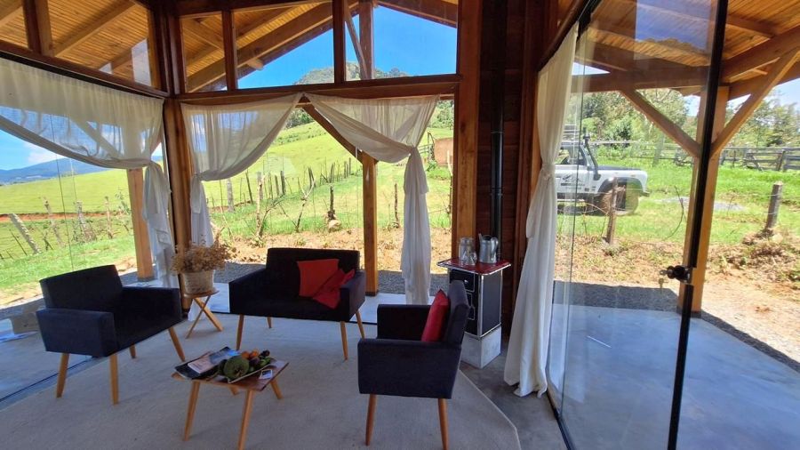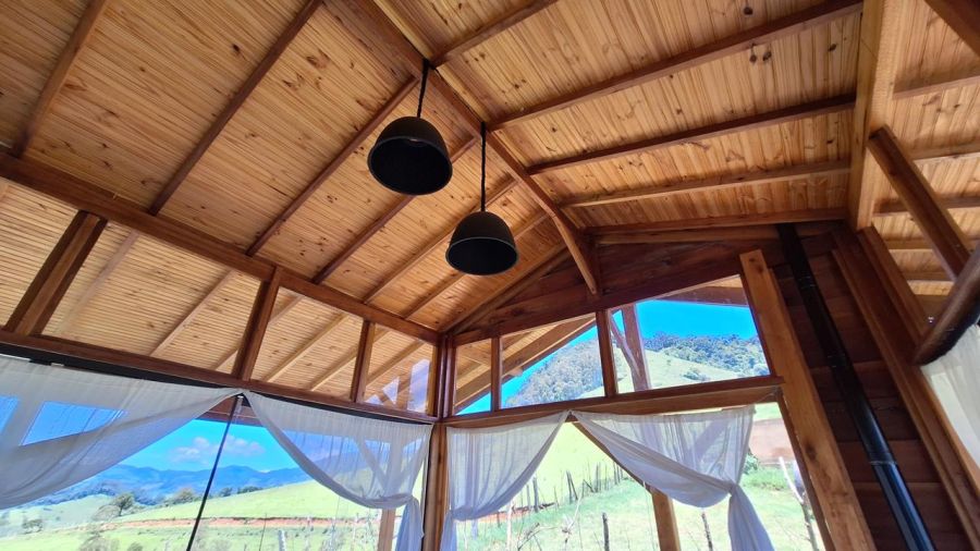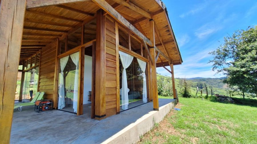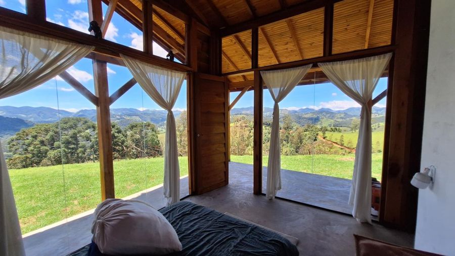 DETALHES DO IMÓVEL: TODOS OS CÔMODOS COM GRANDES PORTAS DE CORRER DE VIDRO TEMPERADO COM 8mm, proporcionando uma interação com a belíssima paisagem das montanhas da região. Pé direito com 4m. Toda em madeira tratada, tanto a estrutura, quanto forros e as paredes externas, estilo "Clapboard" ou "Lap Siding". TELHADO VERDE COM GRAMA ARTIFICIAL.