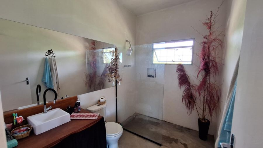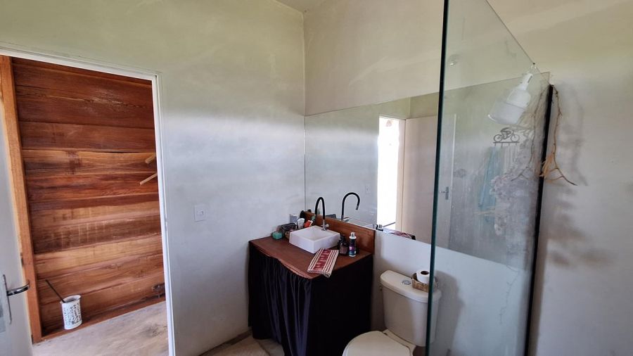 BENFEITORIAS: CHARMOSA CASA DE VIDRO com 90m2 sendo: sala e cozinha conjugadas, espaçoso banheiro, grande dormitório e aconchegante varanda em toda volta.