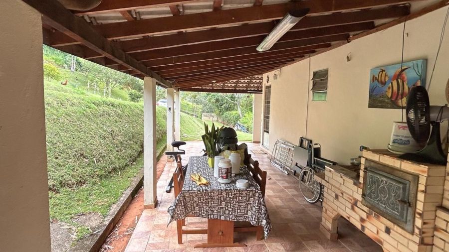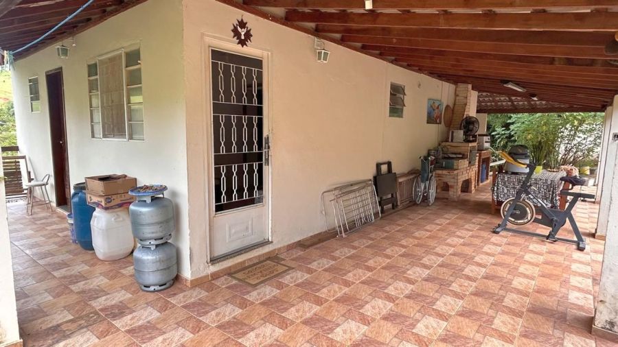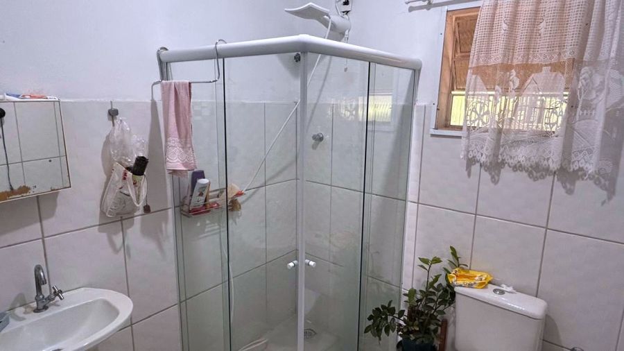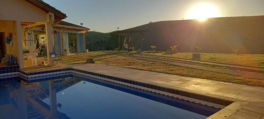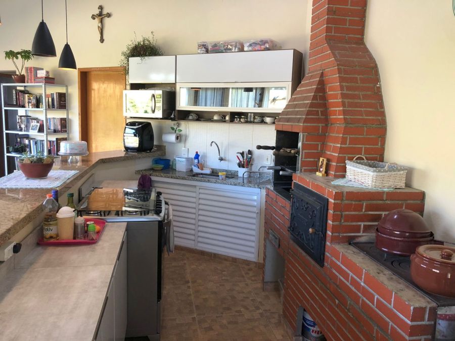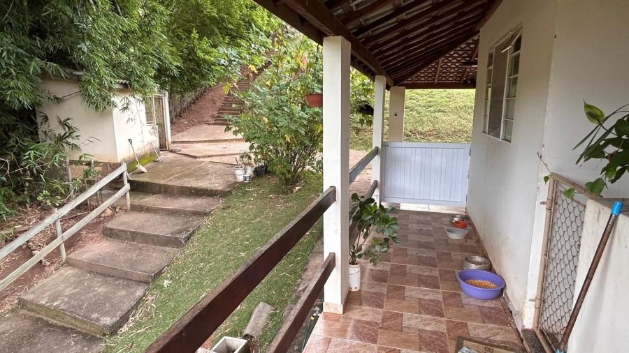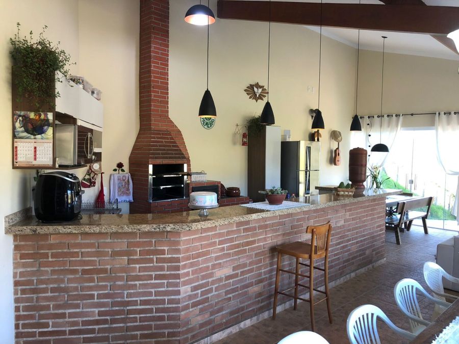 BENFEITORIAS: CASA PRINCIPAL 114m² em alvenaria e laje, contendo: 2 dormitórios, 2 banheiros (1 social interno + 1 de serviço externo), garagem para 2 veículos coberta, canil em alvenaria. RANCHO DE LAZER 94m² contendo: CHURRASQUEIRA, FORNO E FOGÃO À LENHA, sala 3 ambientes, banheiros M/F, depósito/despensa, SAUNA, PISCINA, PERGOLADO E ÁREA DE FOGUEIRA.