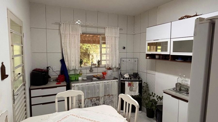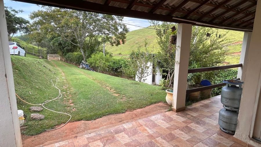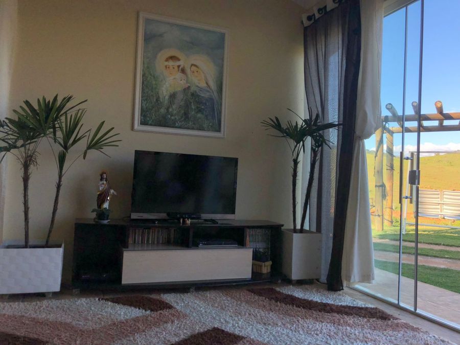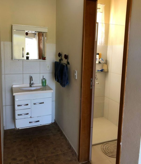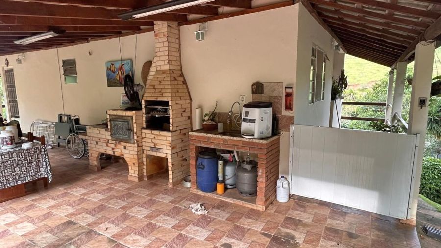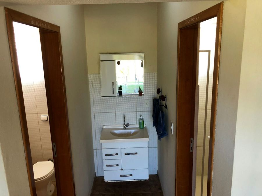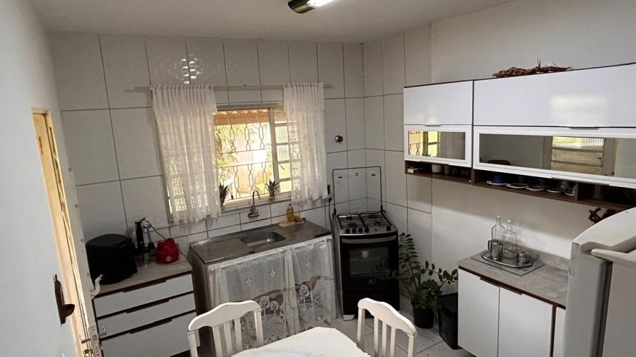 BENFEITORIAS: CASA PRINCIPAL 114m² em alvenaria e laje, contendo: 2 dormitórios, 2 banheiros (1 social interno + 1 de serviço externo), garagem para 2 veículos coberta, canil em alvenaria. RANCHO DE LAZER 94m² contendo: CHURRASQUEIRA, FORNO E FOGÃO À LENHA, sala 3 ambientes, banheiros M/F, depósito/despensa, SAUNA, PISCINA, PERGOLADO E ÁREA DE FOGUEIRA.