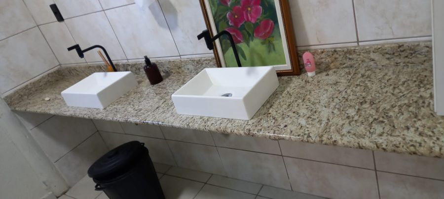 ACABAMENTO: lavatórios com bancadas em mármore.