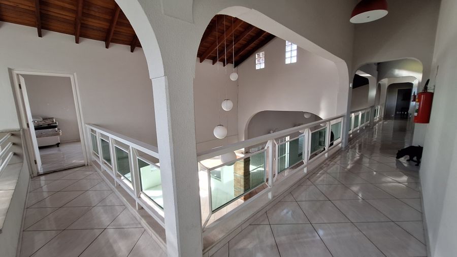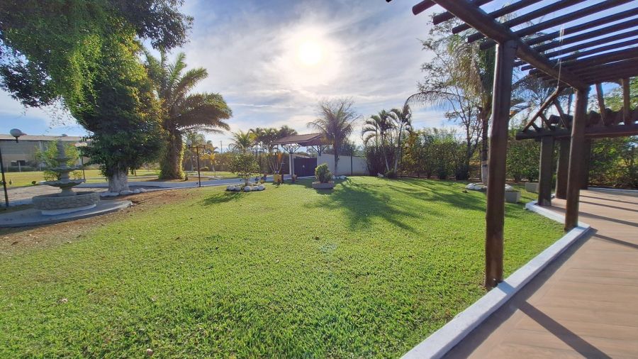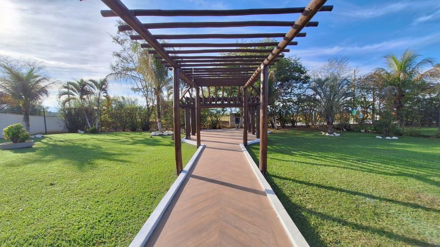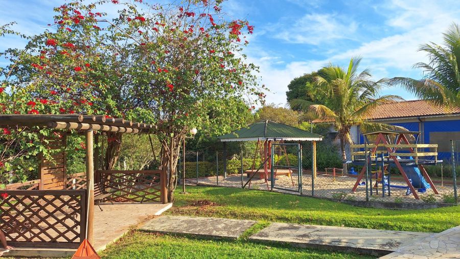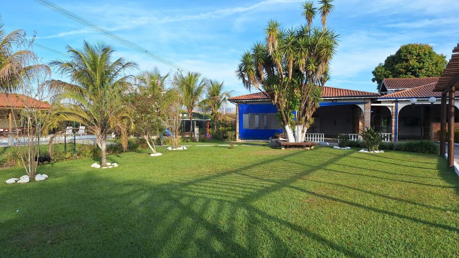 CONSTRUÇÕES/COMPLEMENTOS ÁREA EXTERNA: PISCINAS ADULTO e INFANTIL, Campo de Futebol Soçaite, Playground infantil, PERGOLADOS, mesas de SINUCA e PEBOLIM. Belo e decorativo CHAFARIZ. Amplo Deck com estrutura metálica e cobertura em Policarbonato. Jardins com imenso gramado, passeios sinuosos com bloquetes e guias, ornados com inúmeras plantas e árvores decorativas.