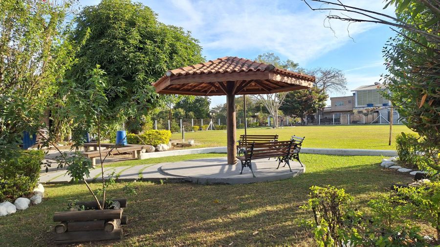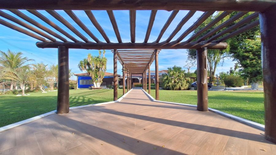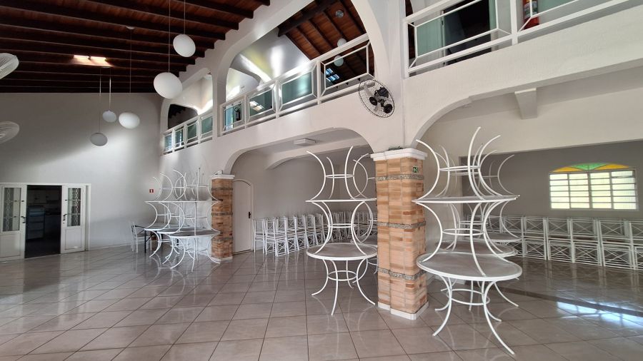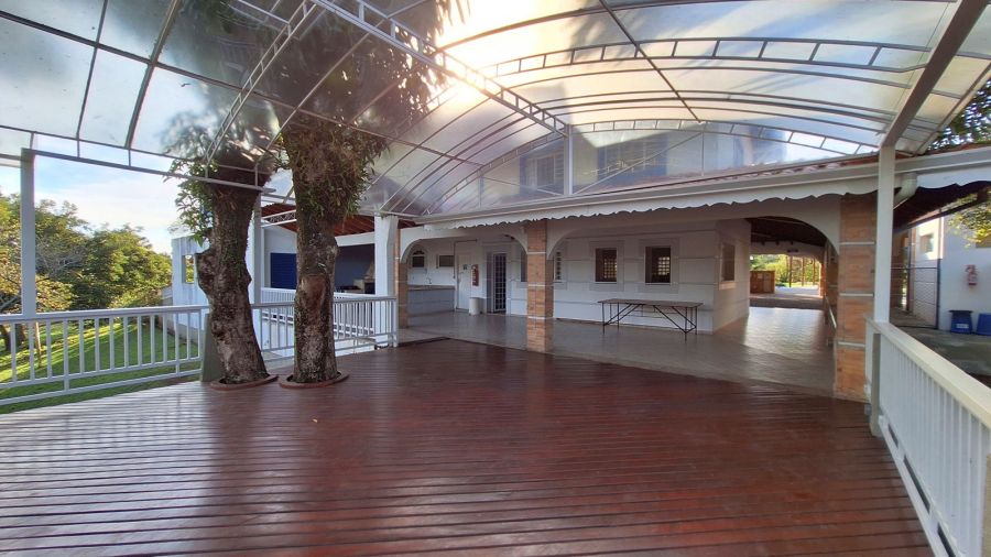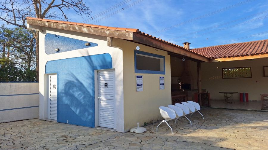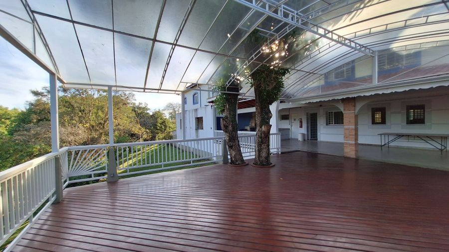 CONSTRUÇÃO ANEXA: Estrutura para LOCAÇÃO CONJUNTA OU SEPARADA, com ENTRADA INDEPENDENTE contendo: 2 Salões externos (800m2), cozinha, área gourmet, churrasqueira/fogão e forno à lenha, banheiros e duchas MASCULINO/FEMININO.