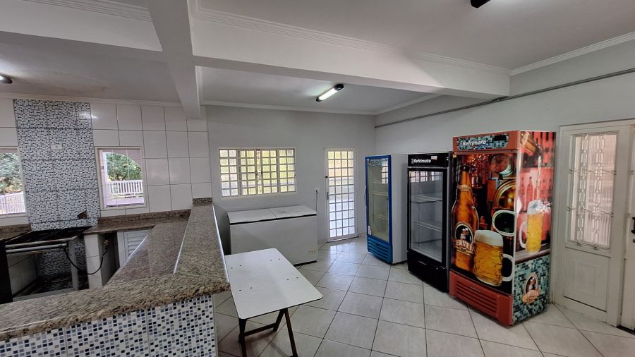 CONSTRUÇÕES: PRINCIPAL: contendo: TÉRREO: Amplo SALÃO DE FESTAS com 700m2 decorado com muito bom gosto, COZINHA COMPLETA E ESPAÇOSA com bancadas e pias de granito com cubas de inox e gabinetes. INCLUEM TODOS OS EQUIPAMENTOS E UTENSÍLIOS. "HOME BAR", TOALETES MASCULINA/FEMININA totalmente equipadas com total limpeza e conservação. SUPERIOR: 4 DORMITÓRIOS (1 SUÍTE), BANHEIRO SOCIAL, SALA DE ESTAR/TV, COM INSTALAÇÕES DE APURADO GOSTO.