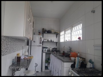 Bom acabamento teto laje, piso frio, banheiro e cozinha azulejados até o teto.